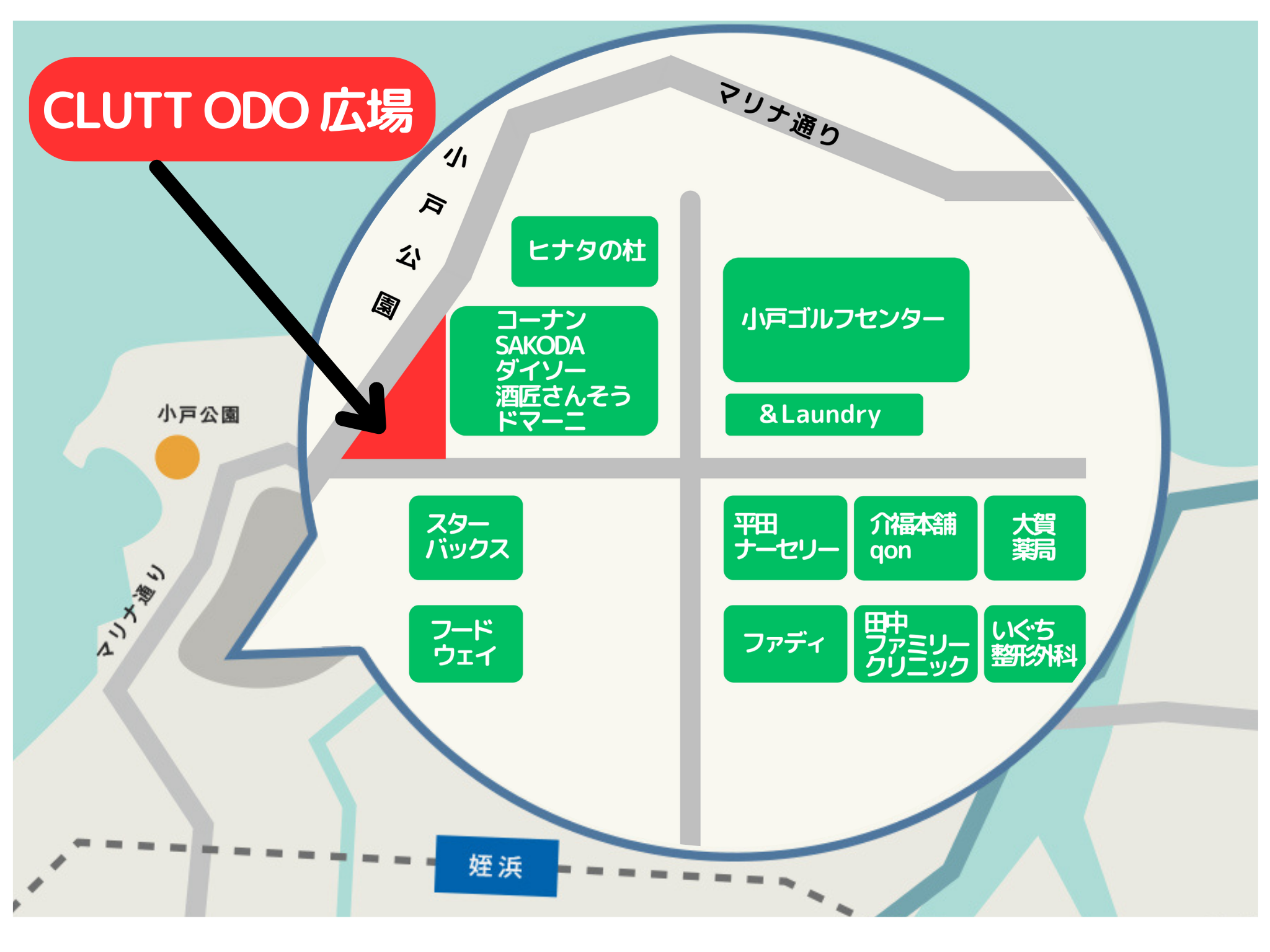 CLUTT ODO広場 所在地:福岡市西区小戸2丁目6(コーナンめいのはま店横)