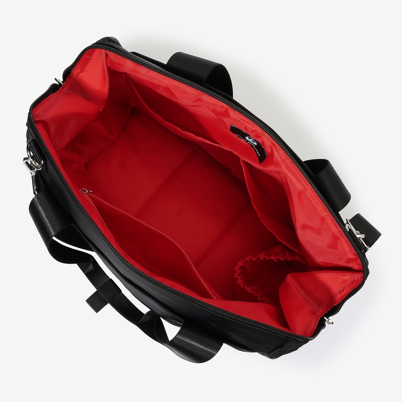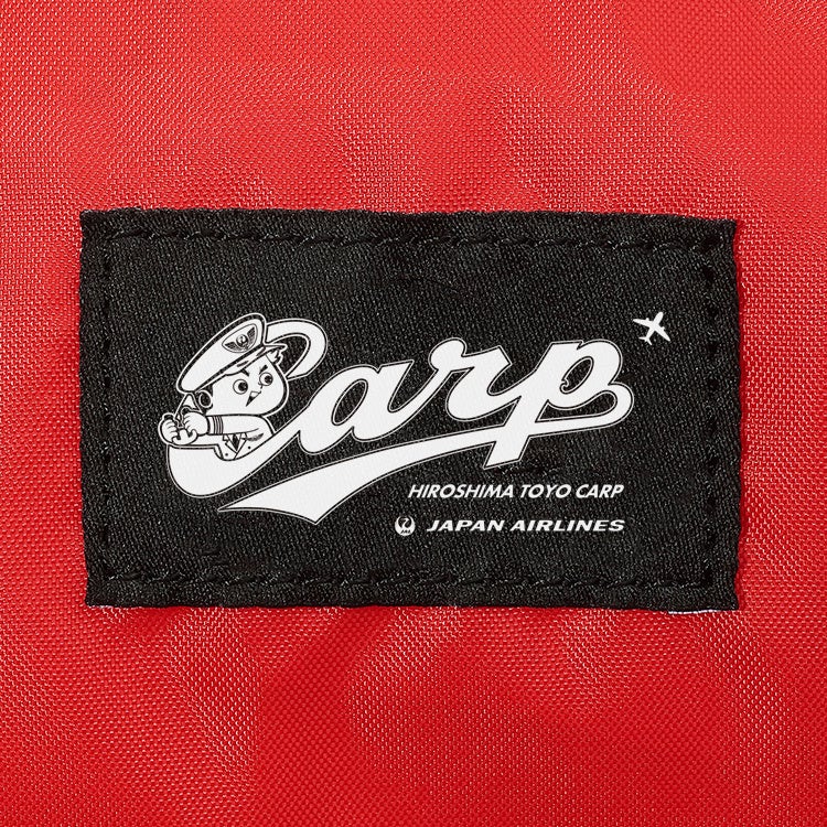 「旅のプロが追求した、旅行に便利なバッグ」としてJALショッピングで大人気のバッグが、JAL×カープコラボ限定カラーで登場します。肩掛け、ななめ掛け、キャリーオンが可能な3WAY仕様で、機内持ち込み可能なスーツケースに適したサイズ感です。また、サイドにもハンドルを付け、荷物の上げ下ろしにも便利な仕様で遠征シーンでも活躍します。裏地にはカープチームカラーの赤を採用し、フロントにはJALとカープのコラボロゴの限定ビスネーム付きです。