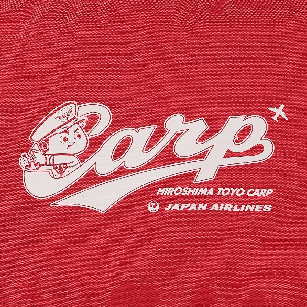 「旅のプロが追求した、旅行に便利なバッグ」としてJALショッピングで大人気のバッグが、JAL×カープコラボ限定カラーで登場します。肩掛け、ななめ掛け、キャリーオンが可能な3WAY仕様で、機内持ち込み可能なスーツケースに適したサイズ感です。また、サイドにもハンドルを付け、荷物の上げ下ろしにも便利な仕様で遠征シーンでも活躍します。裏地にはカープチームカラーの赤を採用し、フロントにはJALとカープのコラボロゴの限定ビスネーム付きです。