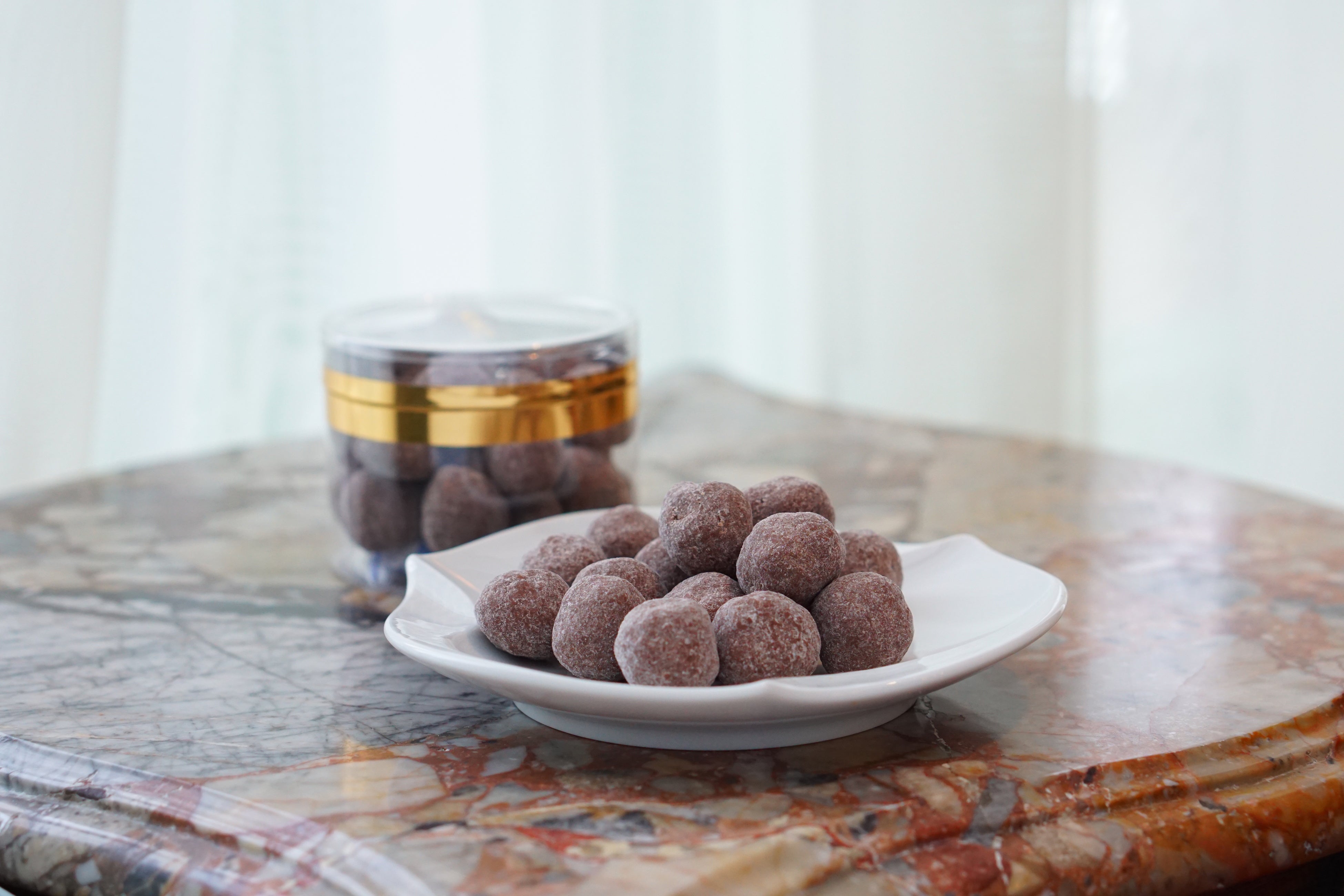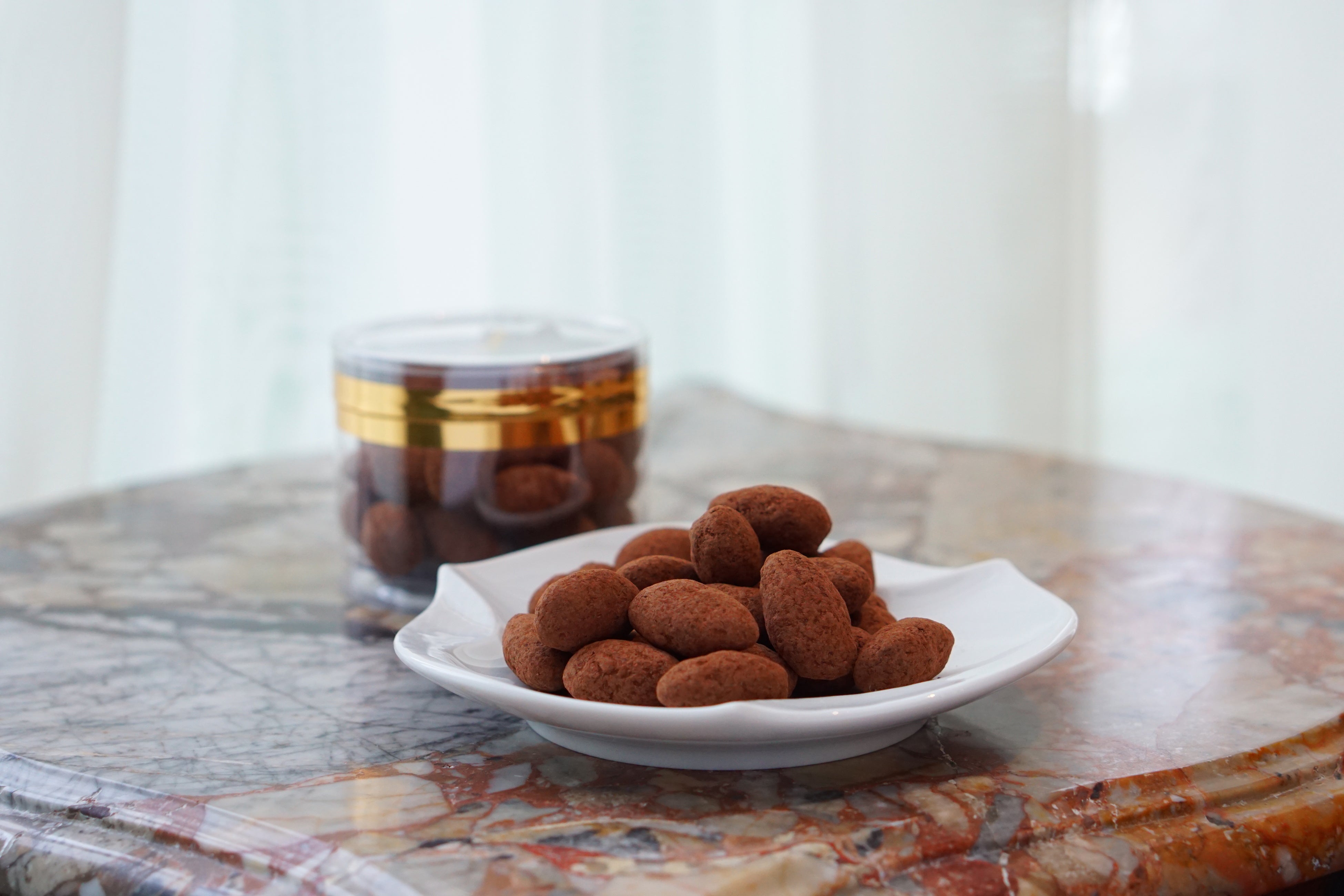 【アマンド】 しっかりとローストしたアーモンドをキャラメリゼ。苦味・酸味・甘味のバランスに優れたチョコレートでコーティング。