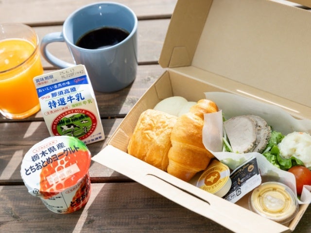 朝食は、那須三元豚のローストポーク、焼きたてパン3種、那須高原牛乳など、那須の恵みを感じる内容をご用意しております。