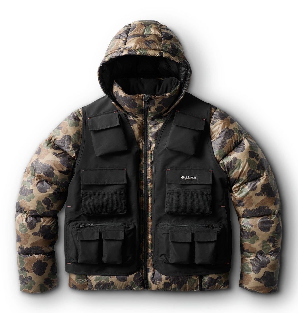 カモフラージュプリントは1980年代の実在するコロンビアのハンティングジャケットから再現。ユーティリティベストのポケット配置やボリューム感、機能性は1970年代のカタログにルーツを持ちます。さらに、グラフィックフーディーやTシャツ、ヘッドウェアも、現代的なフィットと上質な仕上がりで展開します。