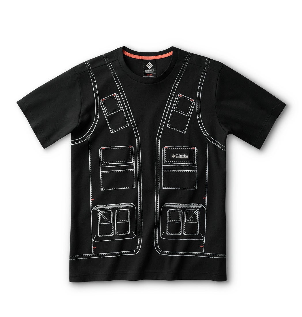 快適性とスタイルを追求したコットン混素材の半袖Tシャツ。Sea Saltは限定仕様のグラフィックプリントを、Blackはコロンビアのアーカイブに残るクラシックなフィッシングベストから着想を得たカスタムグラフィックを採用しています。