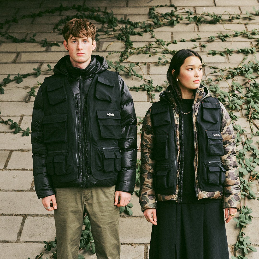カモフラージュプリントは1980年代の実在するコロンビアのハンティングジャケットから再現。ユーティリティベストのポケット配置やボリューム感、機能性は1970年代のカタログにルーツを持ちます。さらに、グラフィックフーディーやTシャツ、ヘッドウェアも、現代的なフィットと上質な仕上がりで展開します。