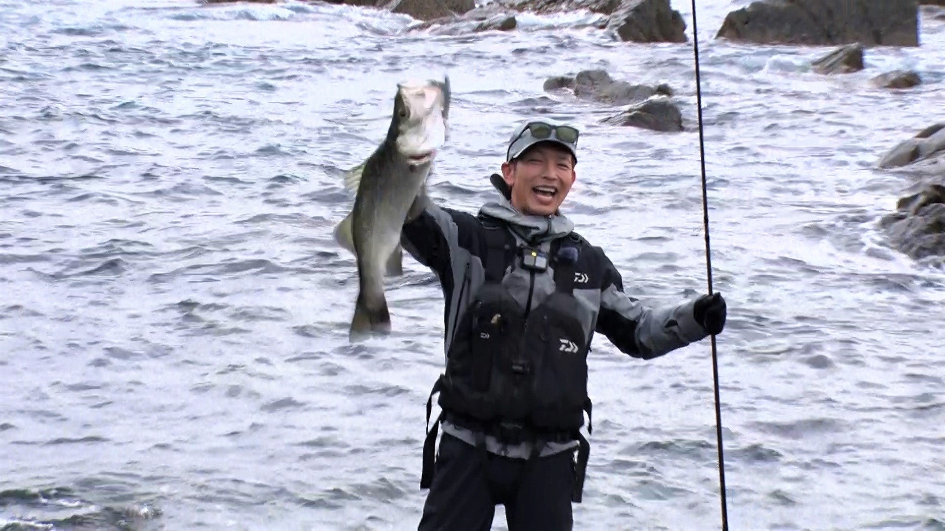 長竿を巧みに操る松永とヒラスズキとのファイトシーンは必見!
