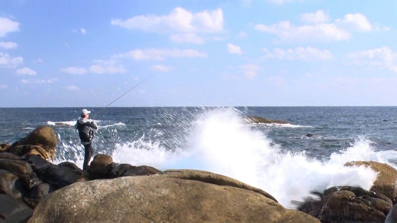 長竿を巧みに操る松永とヒラスズキとのファイトシーンは必見!