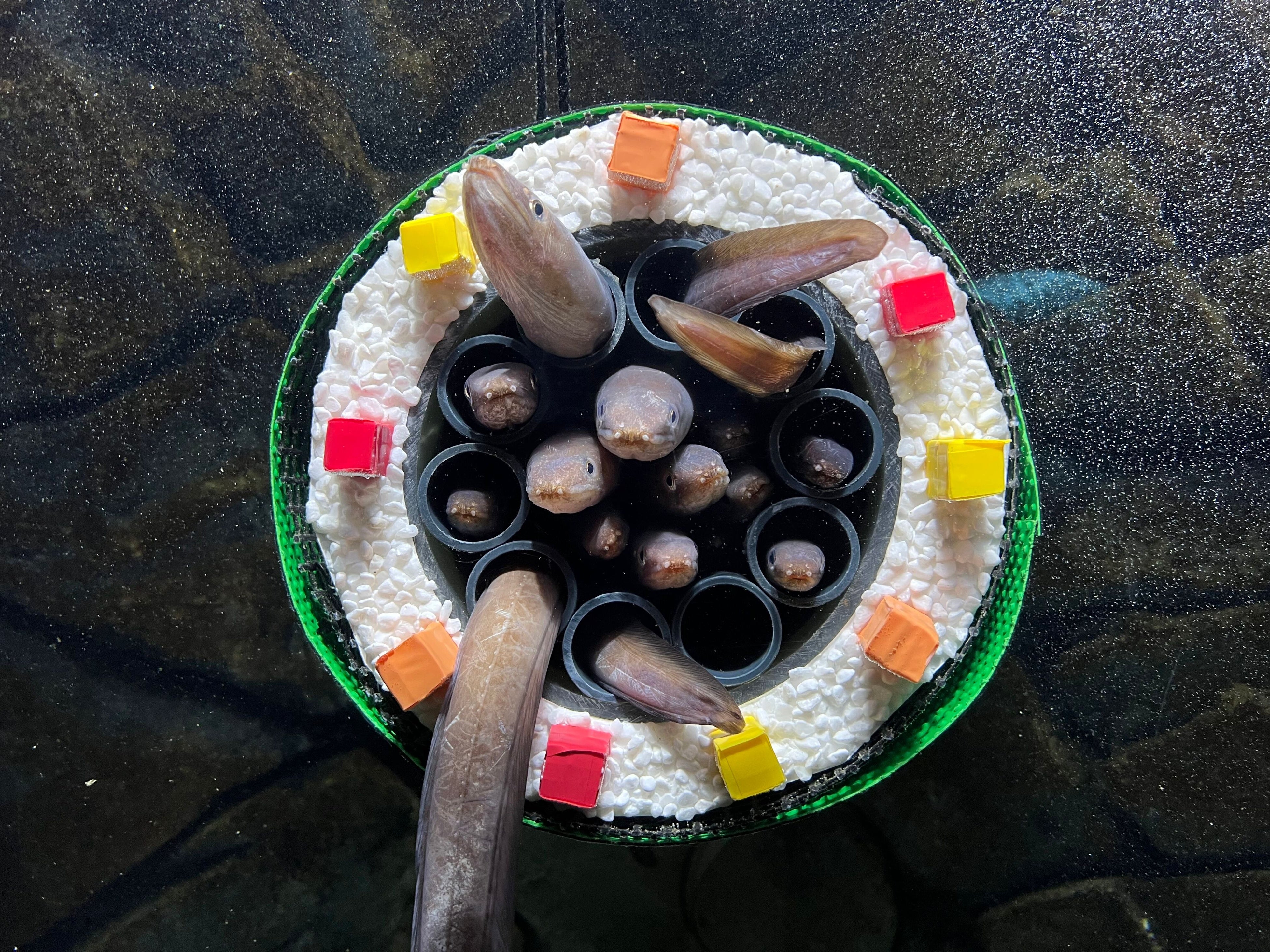恵方巻の代表的な具材の一つとして知られる「マアナゴ」の水槽内に、恵方巻に見立てた筒を設置し「マアナゴ」が筒に潜り込む様子を展示します。