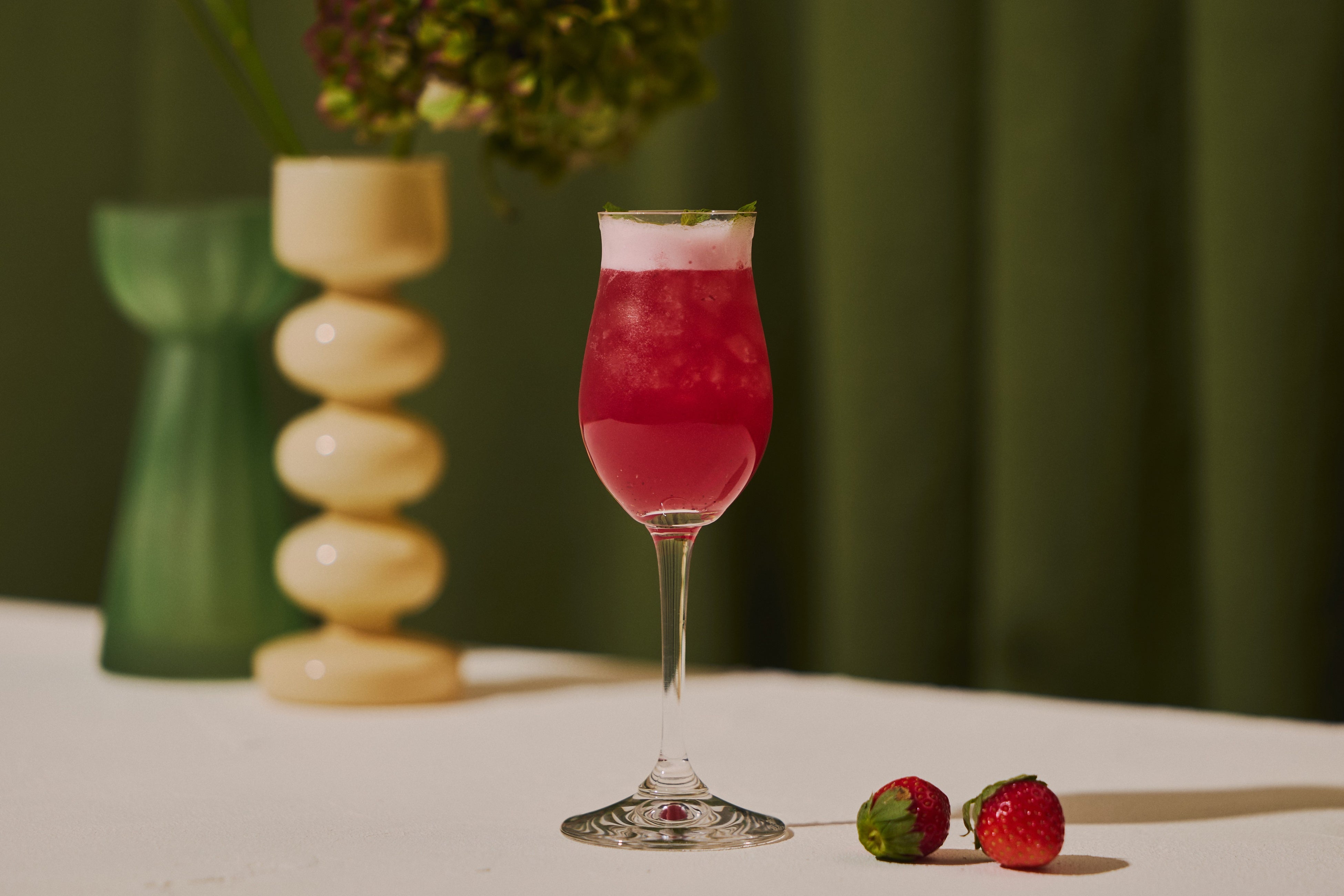 グレープフルーツの爽やかな酸味と、いちごの華やかな甘みが絶妙に調和した、鮮やかな紅色のノンアルコールカクテル。