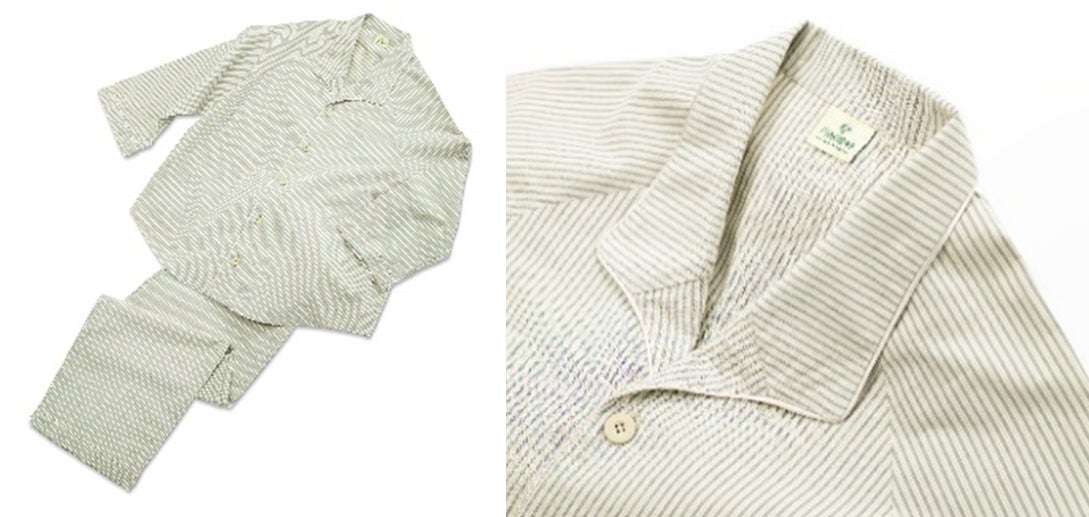 新しい部屋着は従来の浴衣と同じ「川越唐桟」の生地を使用しており、「川越唐桟」の特徴である縞模様を「四季島」ブランドカラーで表現しました。