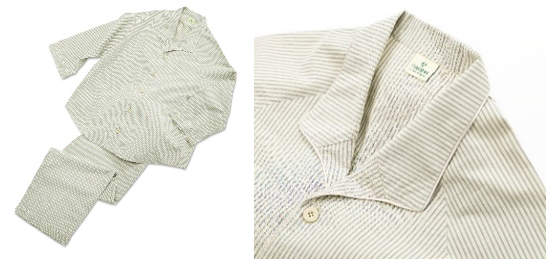 新しい部屋着は従来の浴衣と同じ「川越唐桟」の生地を使用しており、「川越唐桟」の特徴である縞模様を「四季島」ブランドカラーで表現しました。