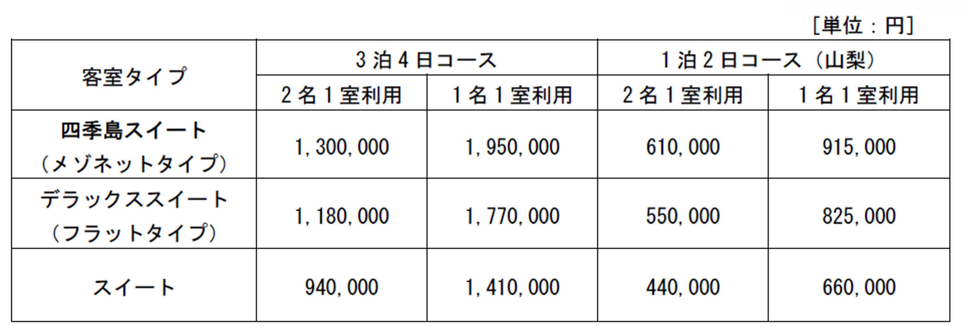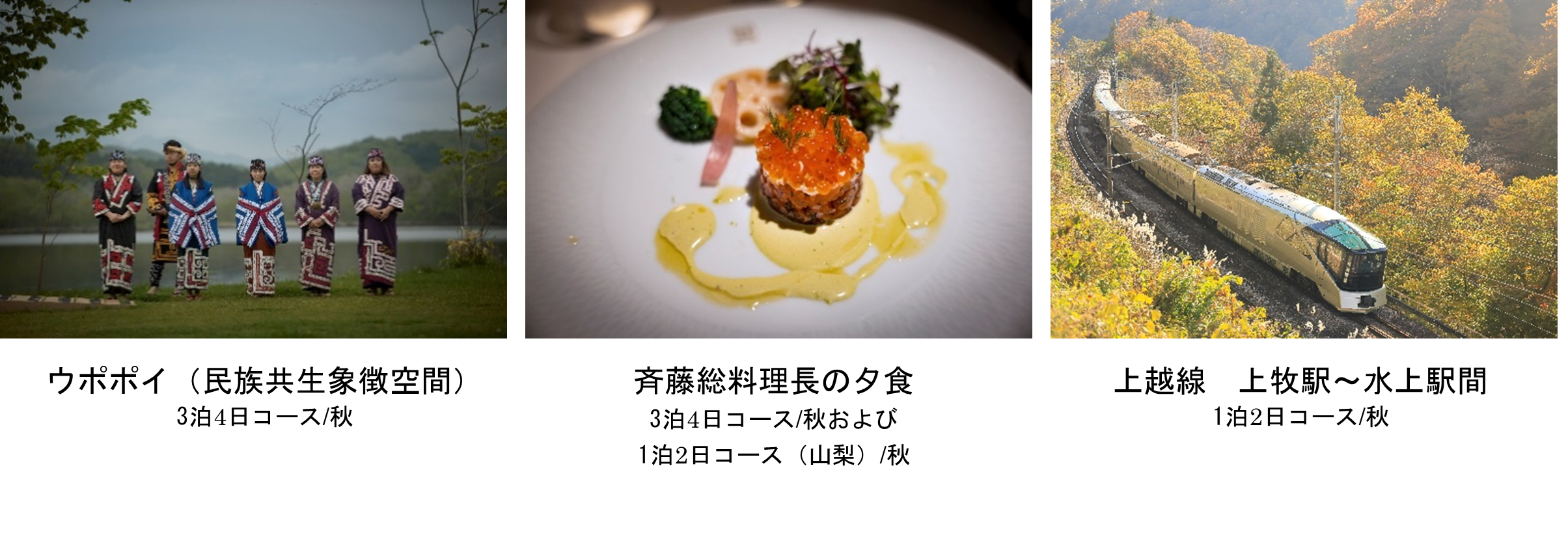 多くのお客さまからご好評をいただいている、「3泊4日コース/秋」、「1泊2日コース(山梨)/秋」の2つのコースを継続して設定します。