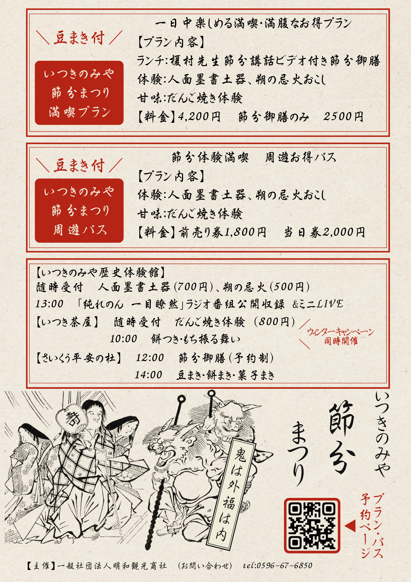 選べる参加プラン(Peatixにて予約受付)※いずれも豆まき付きです。