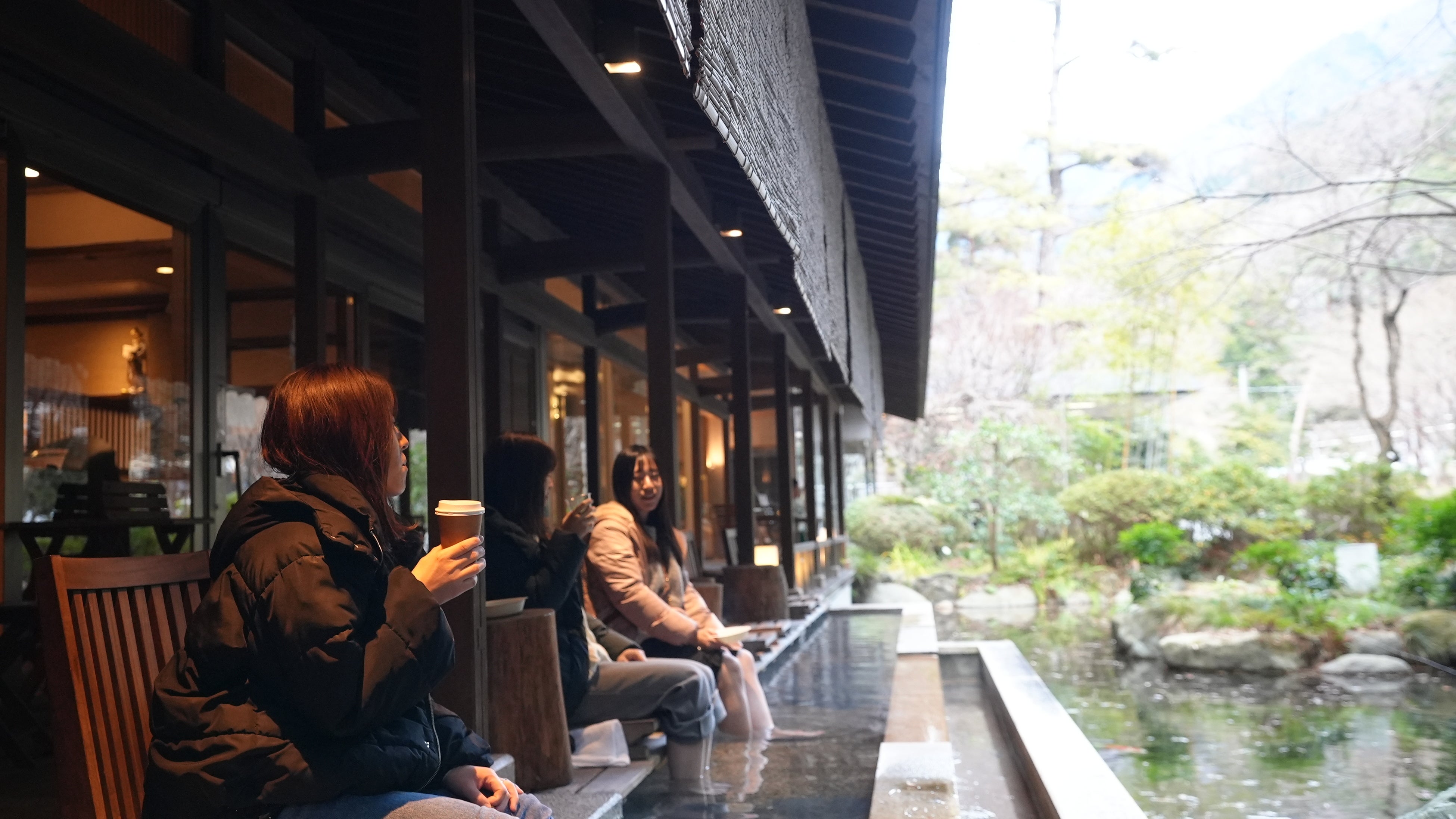 親は、子どもを任せたうえで側で見守ったり温泉や休息の時間を確保。