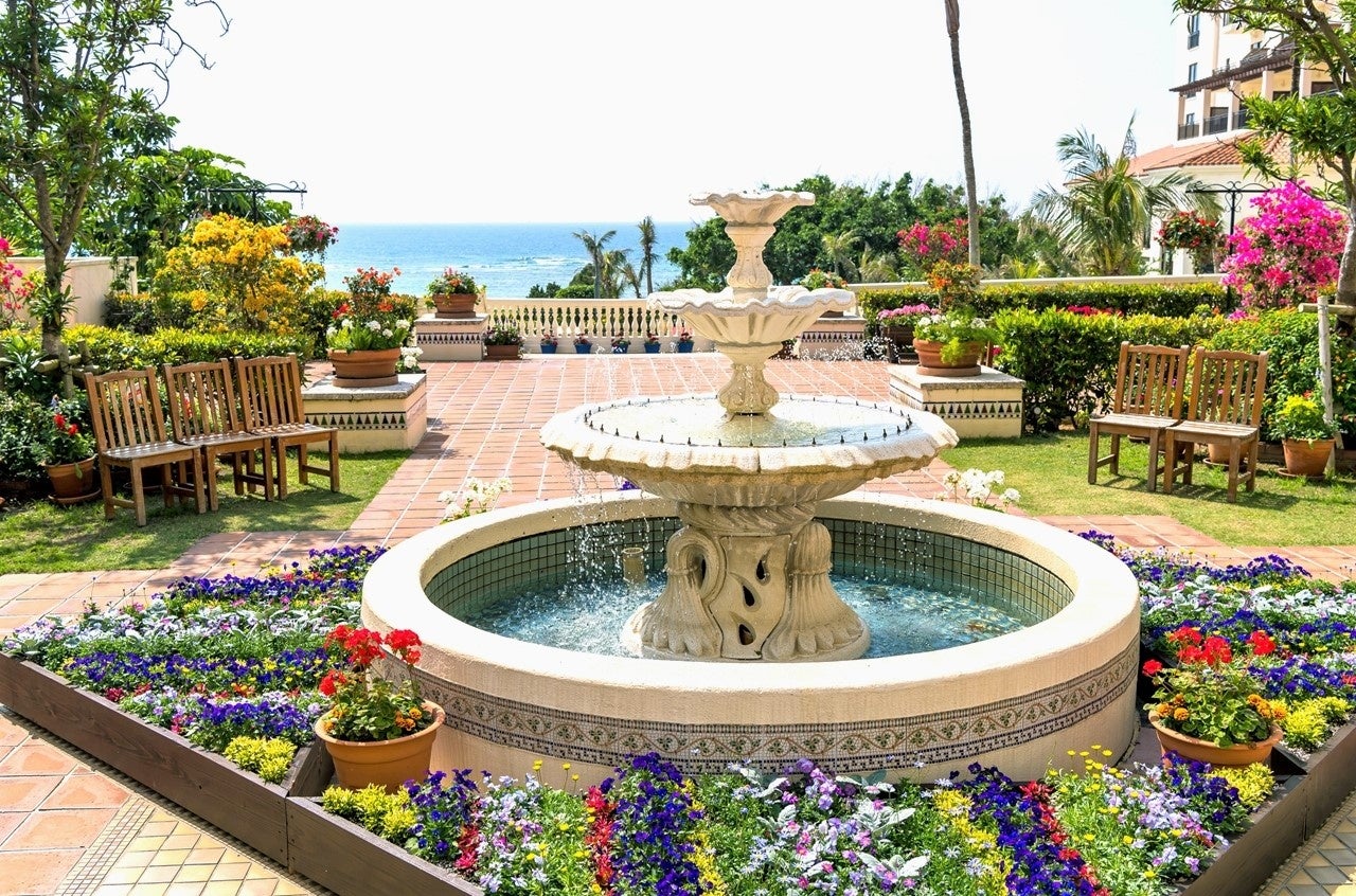 パティオがフラワーカーペットやフラワートピアリーなど、色とりどりの花と香りで満たされる「花の祭典」。花に囲まれた南欧風の当ホテルならではの空間は、安らぎの時間と五感に響く豊かなひとときを提供します。