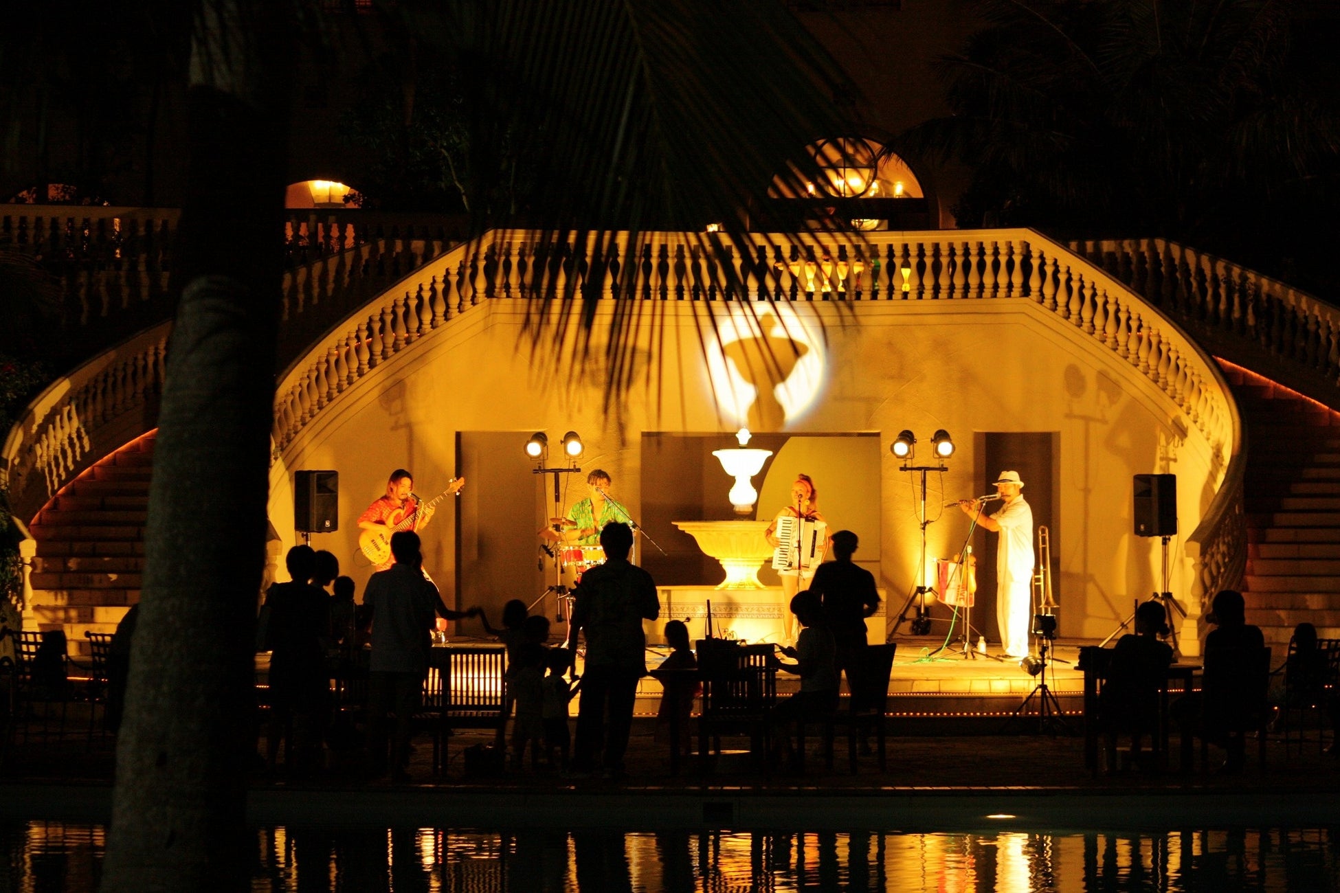 沖縄県内外で活躍するアーティストによるプールサイドでの野外ステージライブを開催。心躍るラテンのサウンドで開業記念日を盛り上げます。
