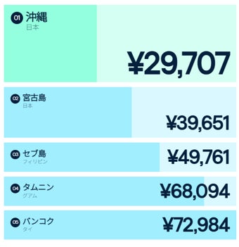 「2026年 最もおトクな旅行先トップ5」および「最もおトクな旅行先ナビ」は、以下のページよりご利用いただけます。