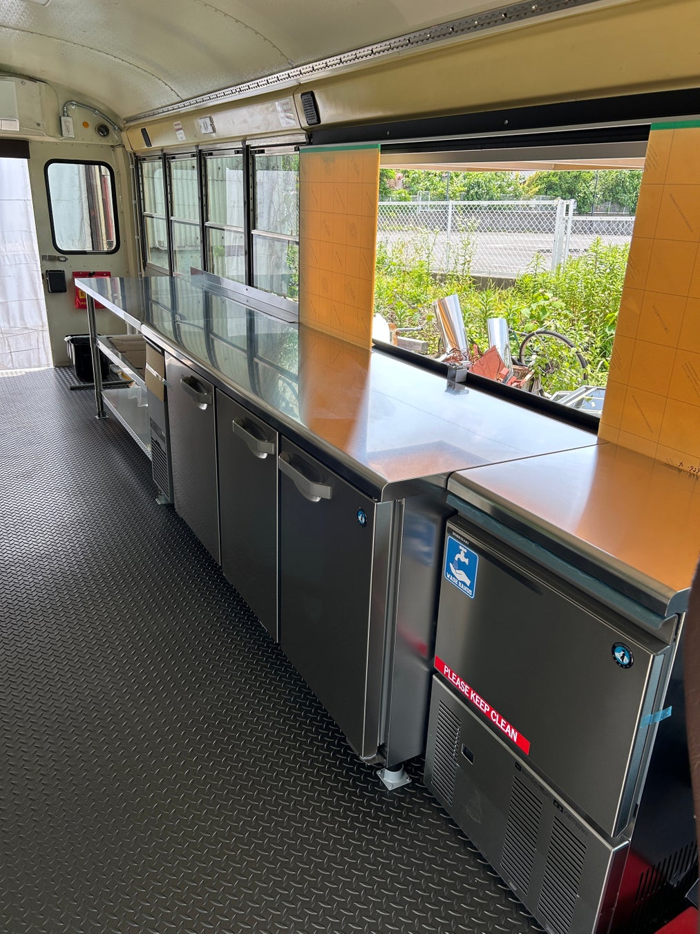 本場アメリカで実際に使用されていたスクールバスを改装した常設型キッチンカーです