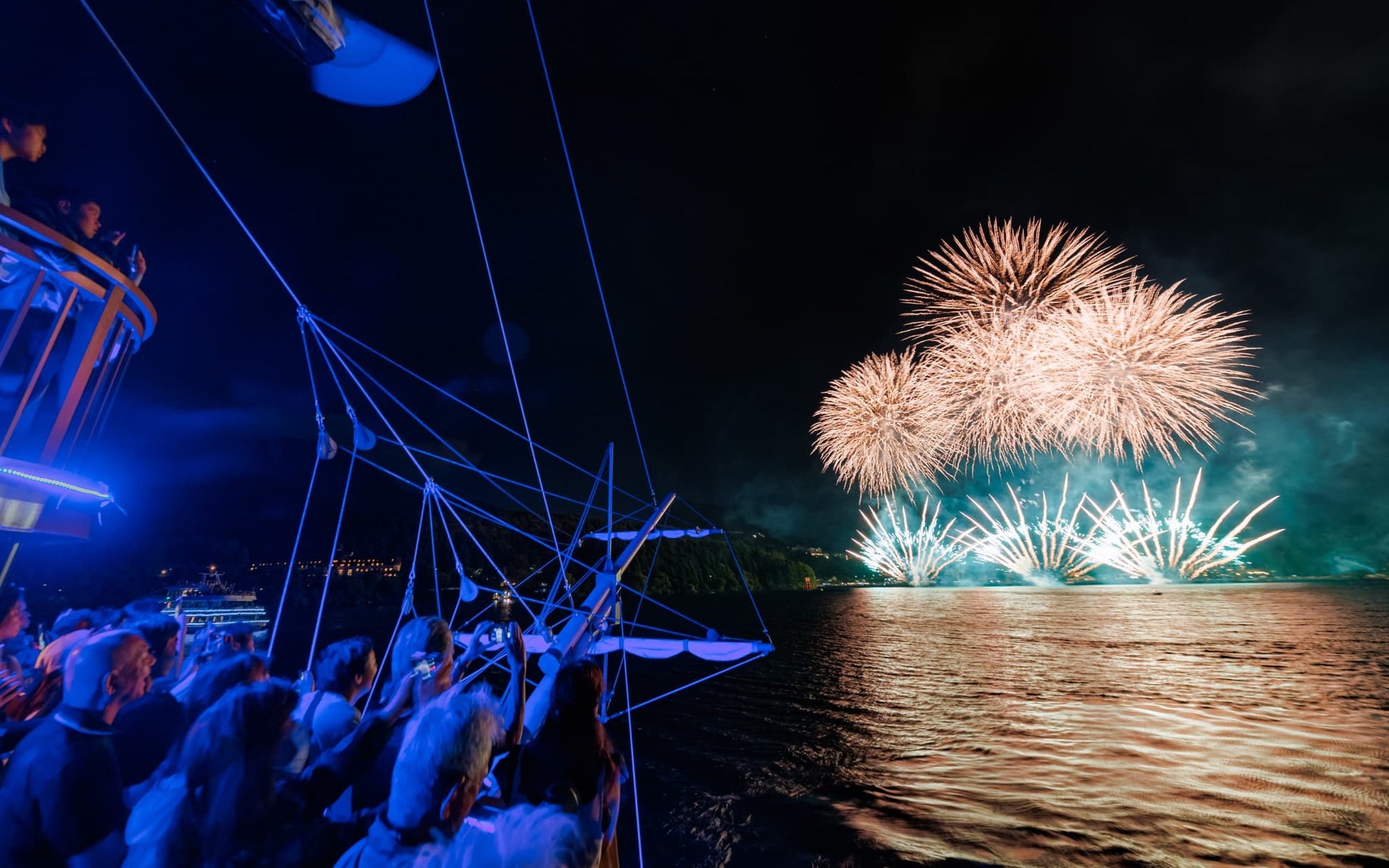 空気の澄んだ冬の箱根では、花火もより一層美しく見えます。海賊船のデッキや優雅で暖かな特別船室などから、芦ノ湖上に打ち上がる色鮮やかな花火の景色をお楽しみください。