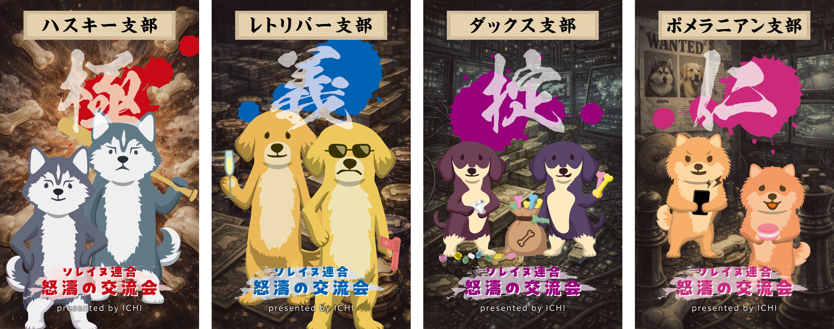 さらに、今回の目玉となるビッグイベントとして、人気4犬種が集うオフ会『ソレイヌ連合 怒濤の交流会 presented by ICHI』を開催します。オフ会では犬種ごとにバトル形式のミニゲームを予定しており、見事1位を獲得したご家族には、愛犬と泊まれる宿泊施設の招待券をプレゼントします。