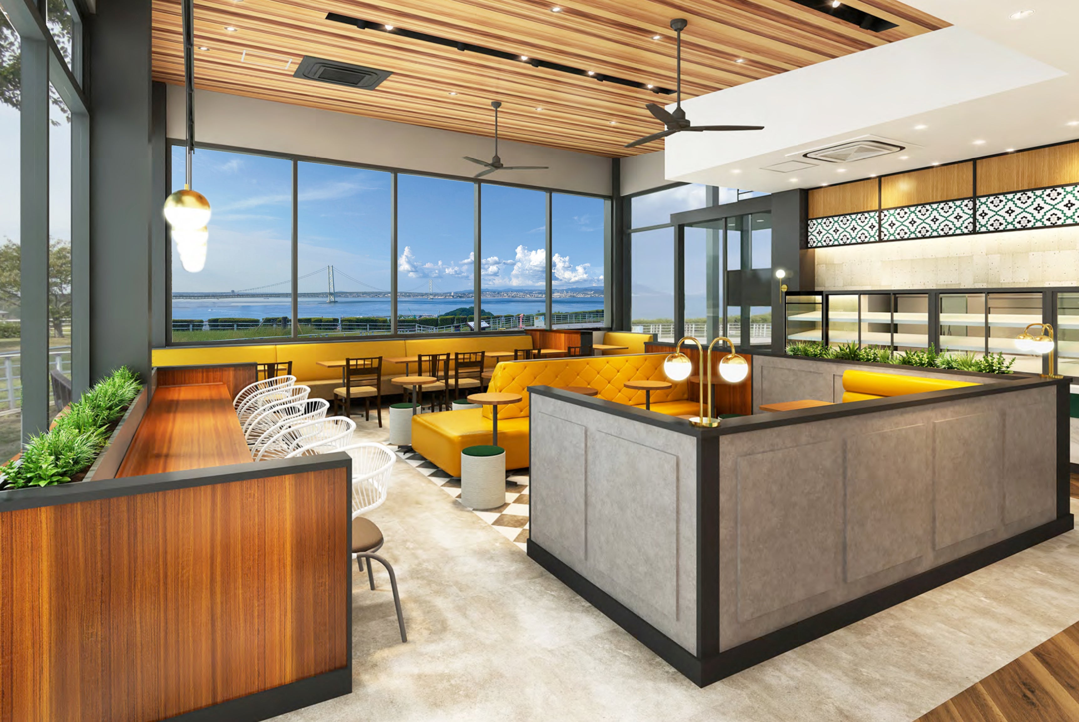 ・淡路サービスエリア(下り)屋外エリアに立地し、店内から明石海峡大橋の絶景をお楽しみいただけます。