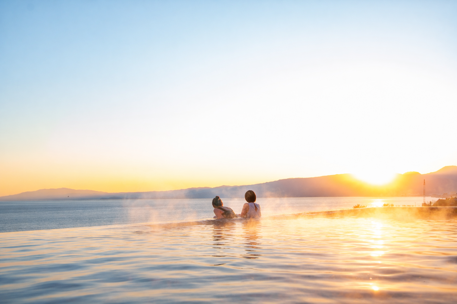 冷たい空気とあたたかな水温の差によって自然に湯けむりが立ちのぼり、相模湾の水平線・富士山のシルエット・朝焼け・ブルーアワーなど、“冬の凛とした空気だからこそ美しく映える景色”が広がります。