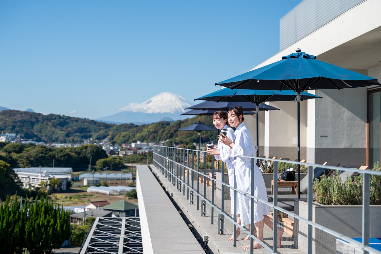 相模湾と富士山を望む絶景のパノラミックサウナや本格フィンランドサウナ、岩盤浴やテピダリウム、相模湾からの風を