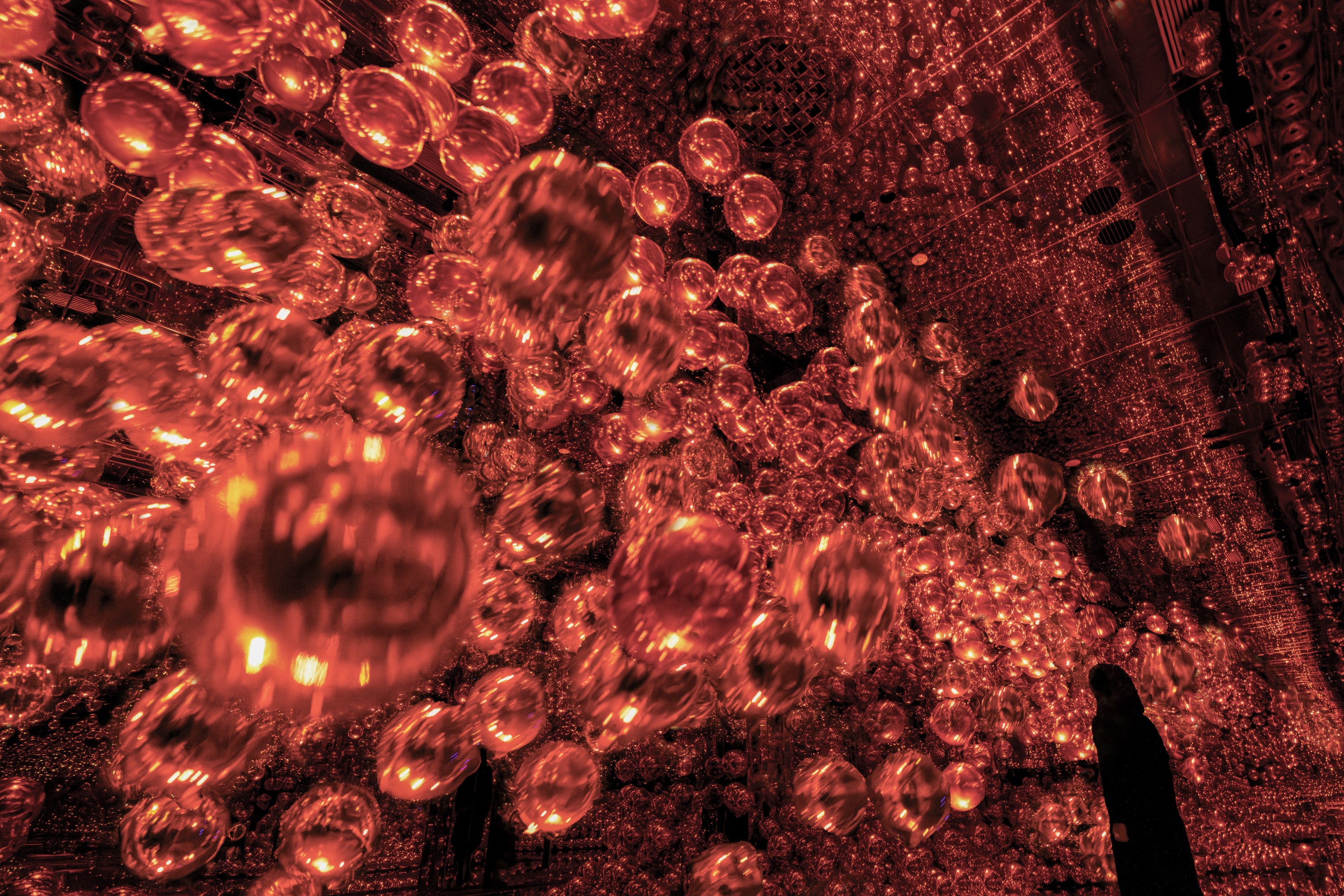 「チームラボ バイオヴォルテックス 京都」では、「環境が現象を生み、その現象が存在を創る」という「環境現象」をコンセプトに、物体ではなく、特別な環境を創り、環境が生んだ現象によってつくられた作品を展示しています。