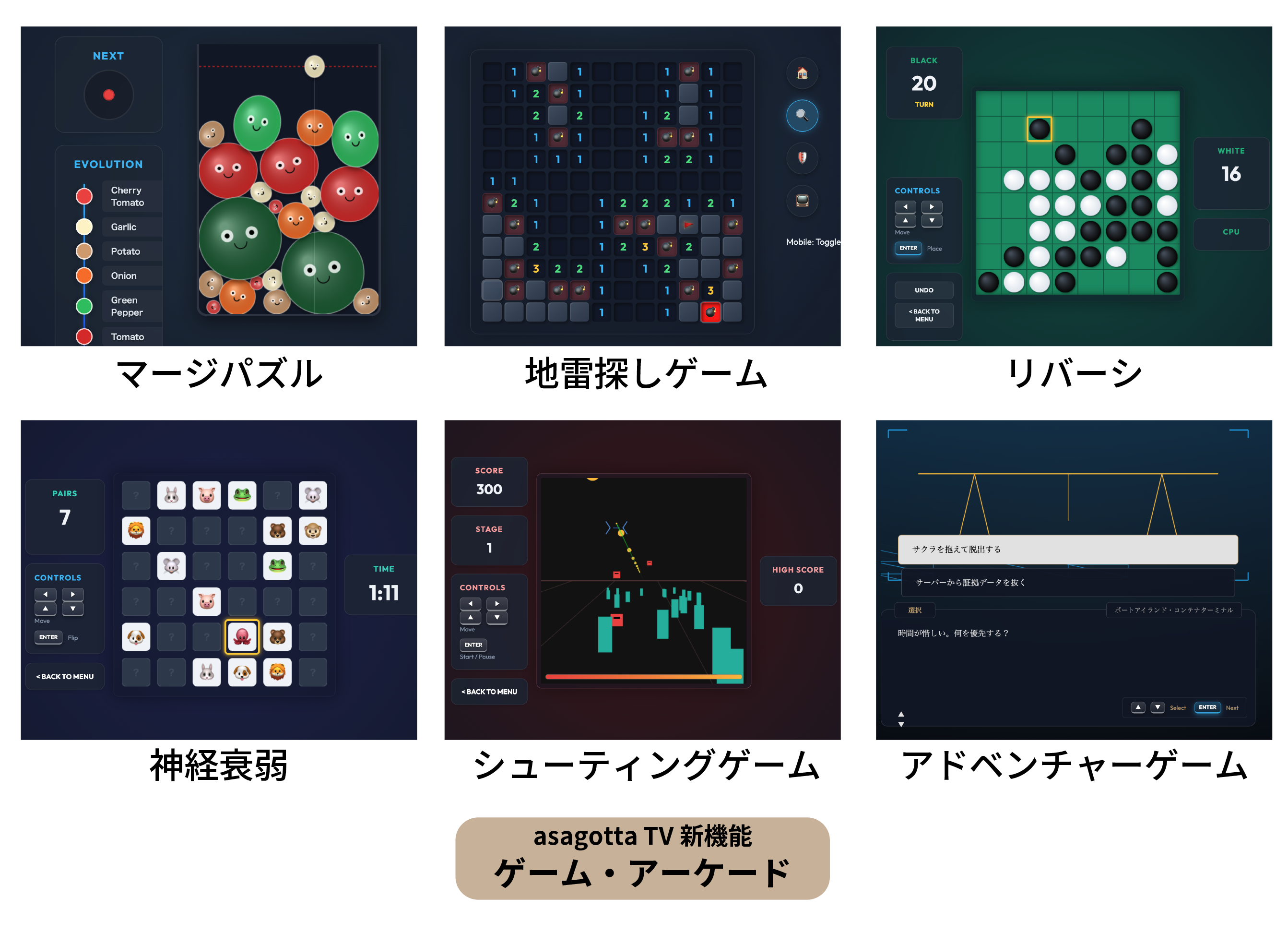 asagotta TV 新機能「ゲーム・アーケード」の一部