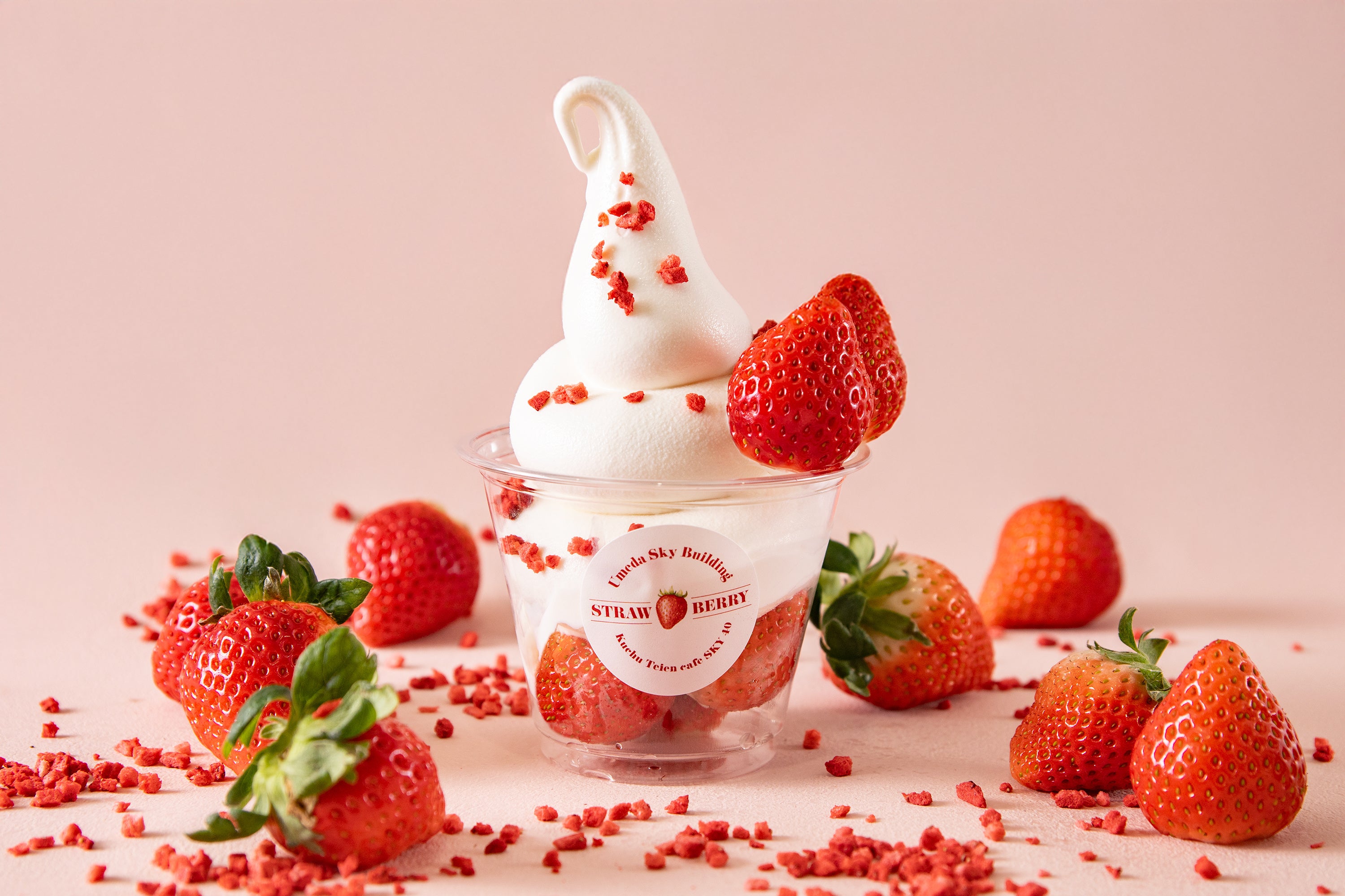 完熟いちごの甘酸っぱさと爽やかな香り、cafe SKY 40自慢のバニラソフトクリームの組み合わせを是非お楽しみください。