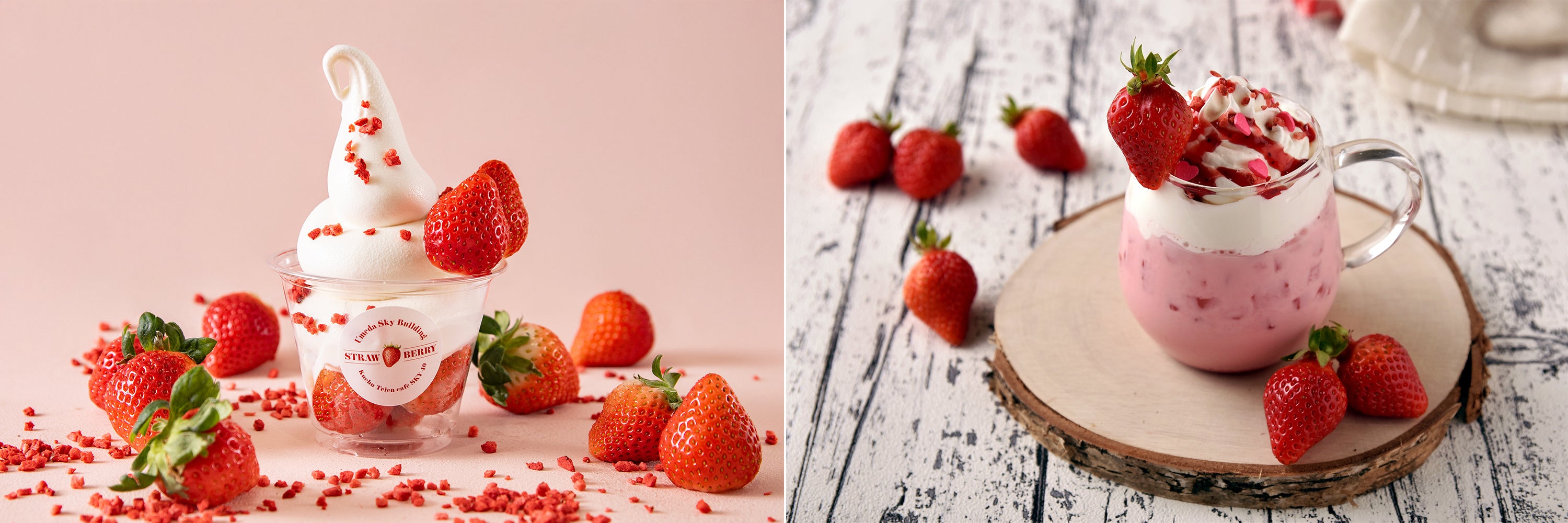 2026年2月28日(土)までの期間中、空中庭園展望台 40Fカフェスペース「cafe SKY 40」では、数量限定・期間限定でフレッシュな苺を使ったメニューが登場!