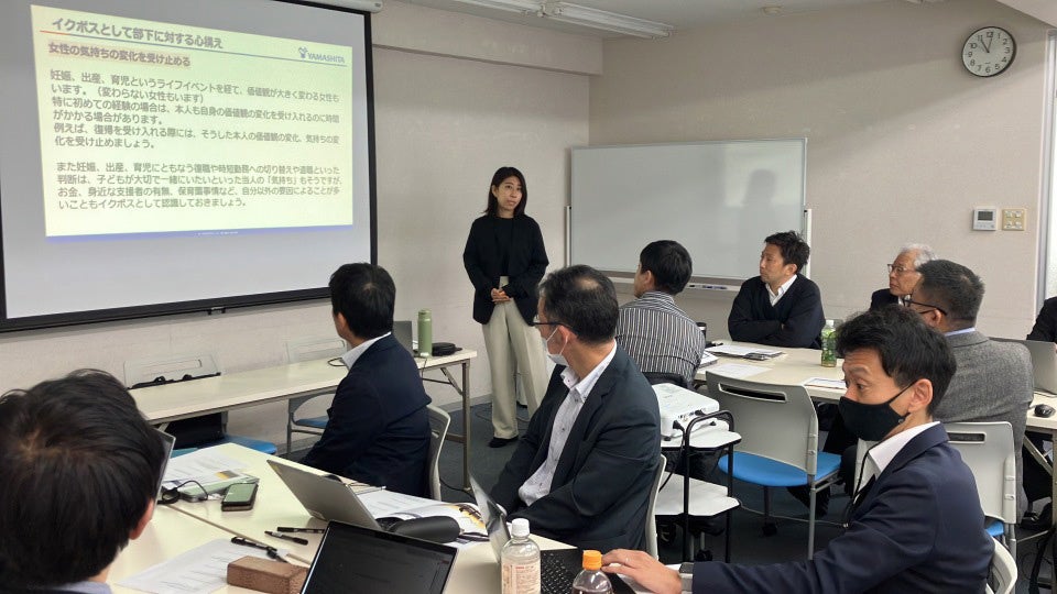 「なぜイクボスが必要か?」の理解、実際に育休を取得した方の声をもとにグループワークや意見交換を行っています。