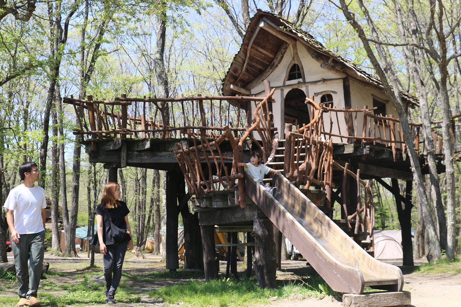 ツリーハウスビルダー 稲垣豊氏による、設計図のない独創的なツリーハウス群(地上15mを超える「ノッポ」や、樹上回廊で結ばれた「トントゥ・ノア」など)は、子供だけでなく大人も冒険心へと誘います。また「石窯コテージMUGI」のように、本格的な石窯でのパン作りや「お店屋さんごっこ」ができる仕掛けを備えた施設など、家族が役割を持って共に楽しめる、新しい滞在の形を提案しています。