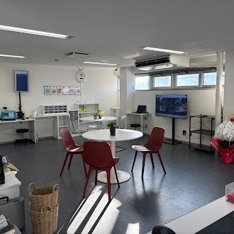 新設された川崎営業所のオフィスは、広々とした執務スペースに加え、リラックスしてコミュニケーションが取れる休憩スペースも完備。明るく清潔感のある職場で、社員同士の連携を深めています。