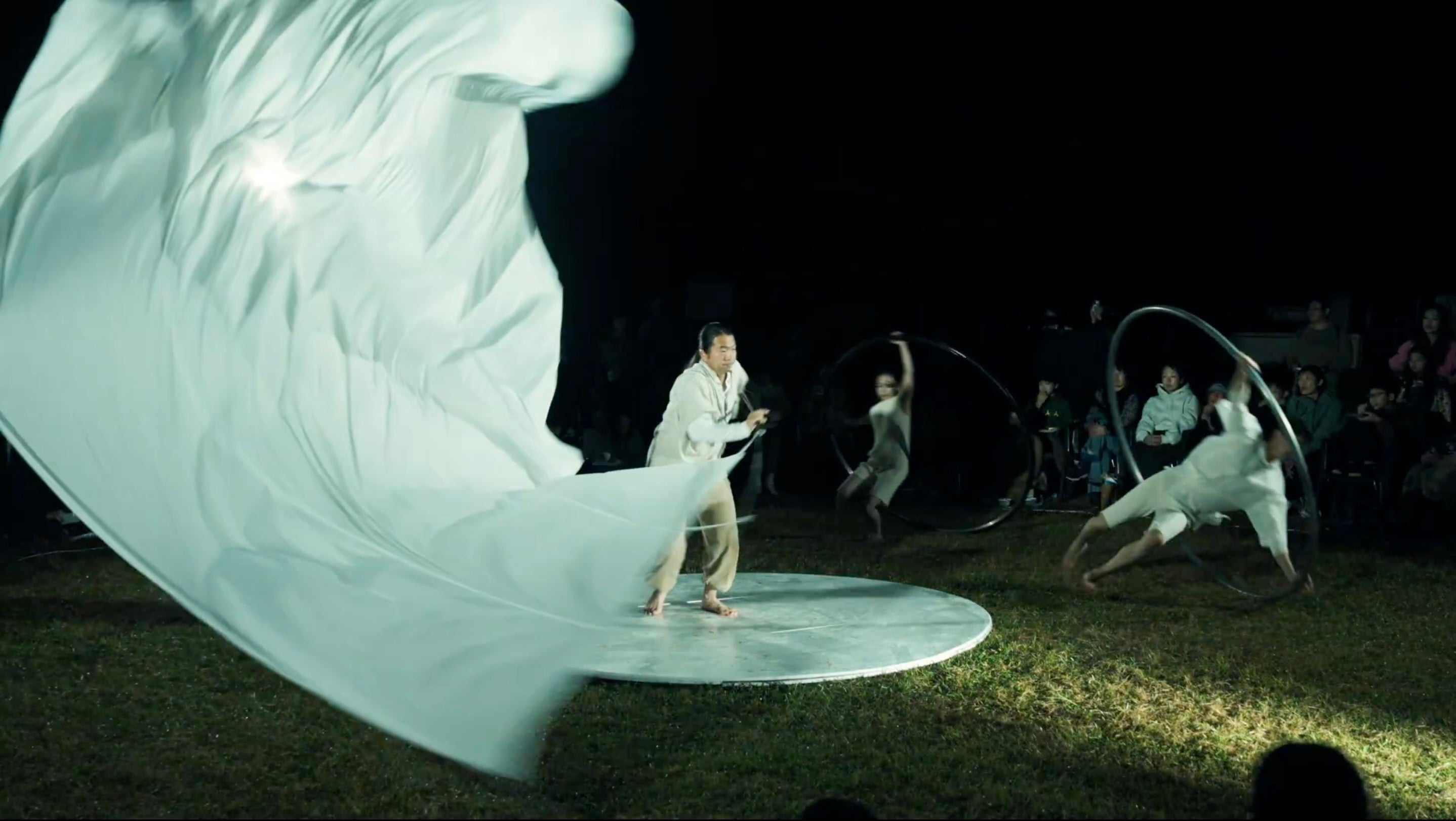 香川を拠点に活動するサーカスアーティスト、谷口界と大旗遣いの麻風を中心に2025年に結成された現代サーカスカンパニー。シルホイール、大旗、庵治石を用い、重力と浮遊の間を舞う身体表現を展開する。風や光、石といった自然の要素を身体に取り込み、素材と空間、観客との呼吸を共有することで、観る者の感覚をひらき、自然とのつながりを呼び覚ます舞台の創造を模索している。