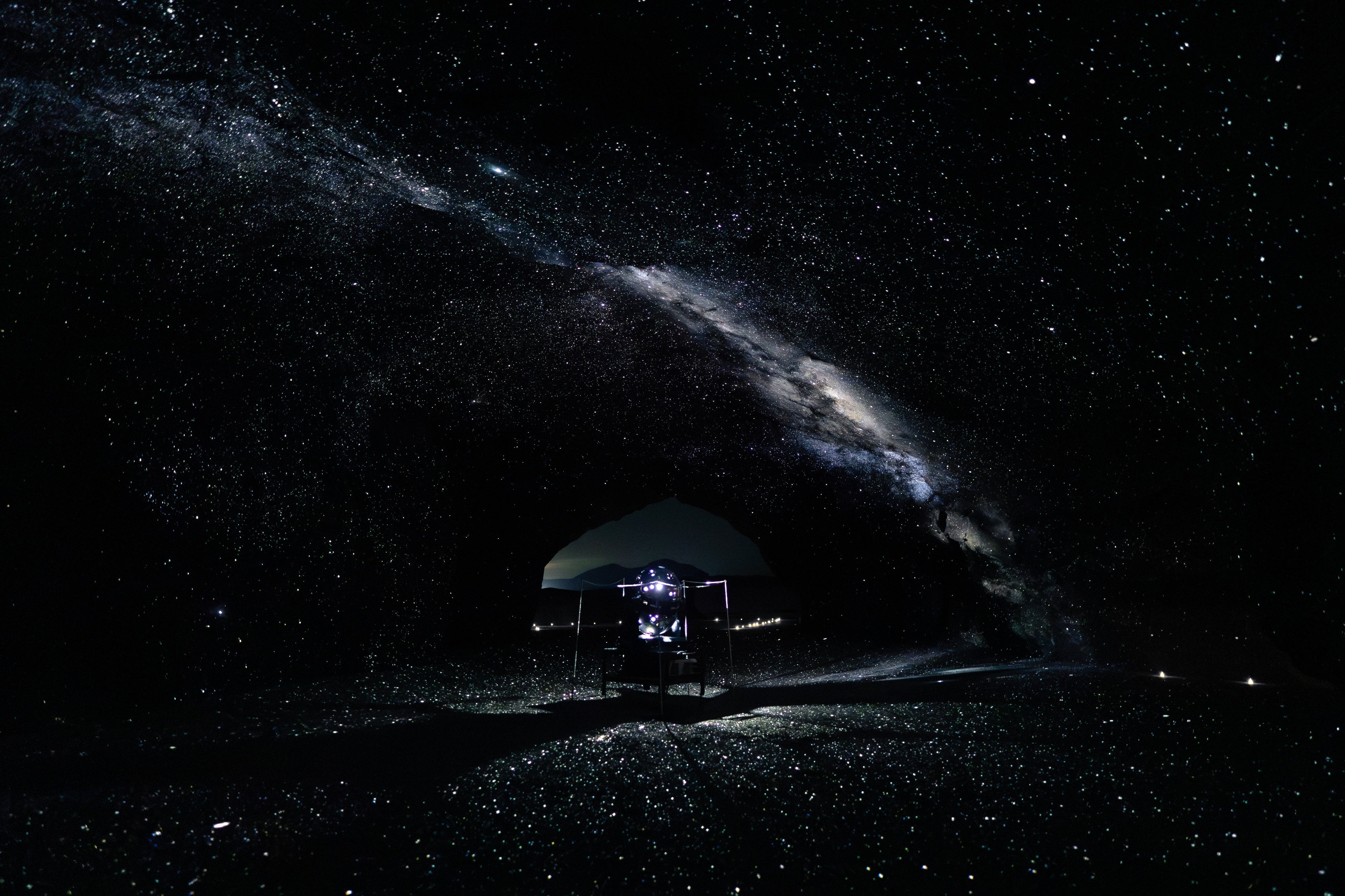 ◻︎Aコース・・・・・4,800円(税込) 各便30名様 プレーヤー:Mechen HIFI M30 ヘッドホン:Marantz professional MPH-1 千田泰広作品ポストカード付き ▪️スーパープラネタリウム星の洞窟・・・・・¥3,500(税込) (小学生以下無料) 日時:2025年11月22日(土)23:50〜25:00 2025年11月23日(日)24:20〜25:30