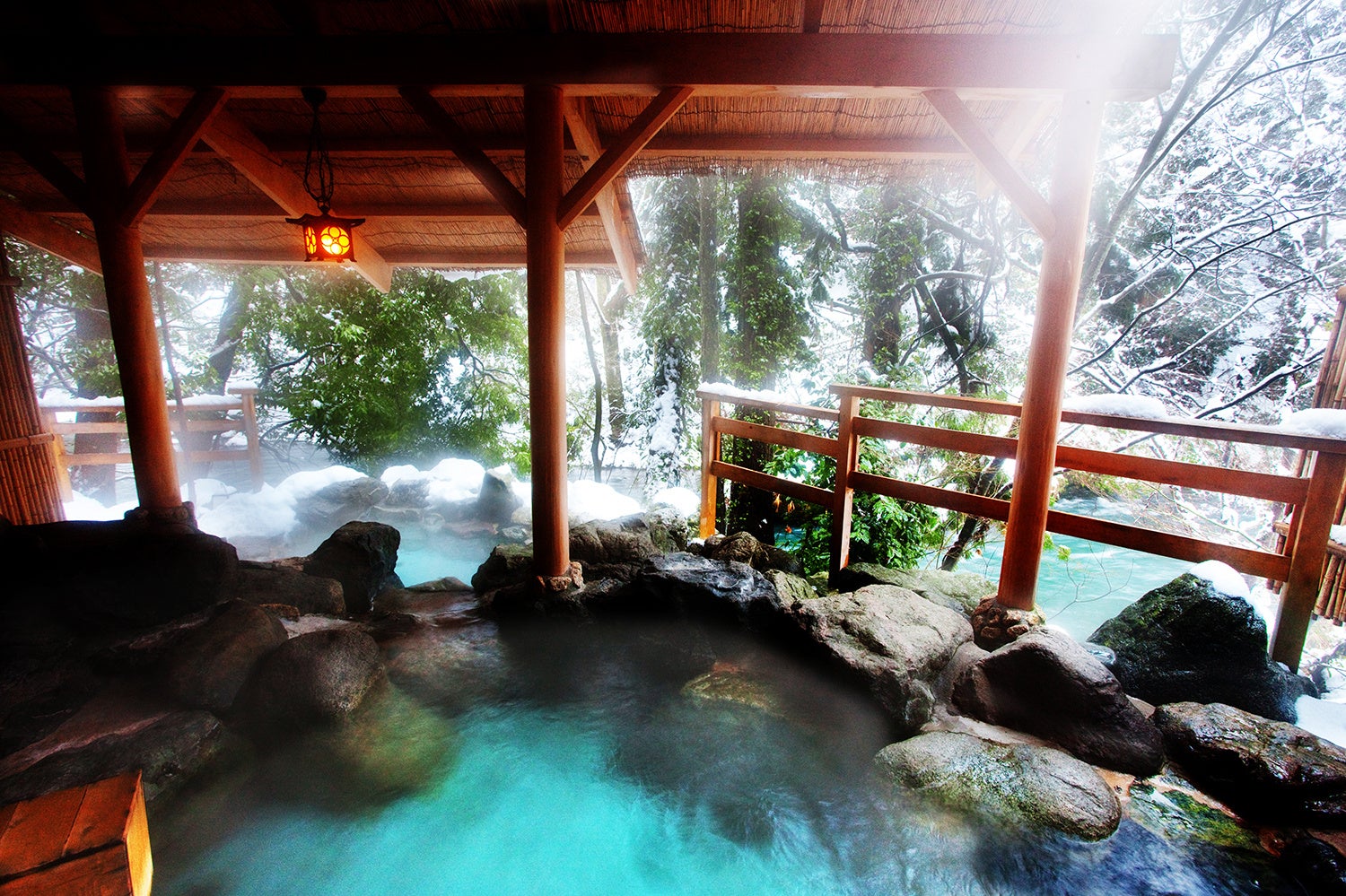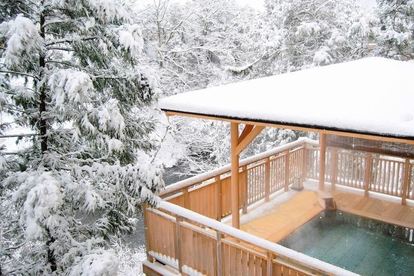 降り積もる雪を眺め、まろやかな湯に癒やされる。