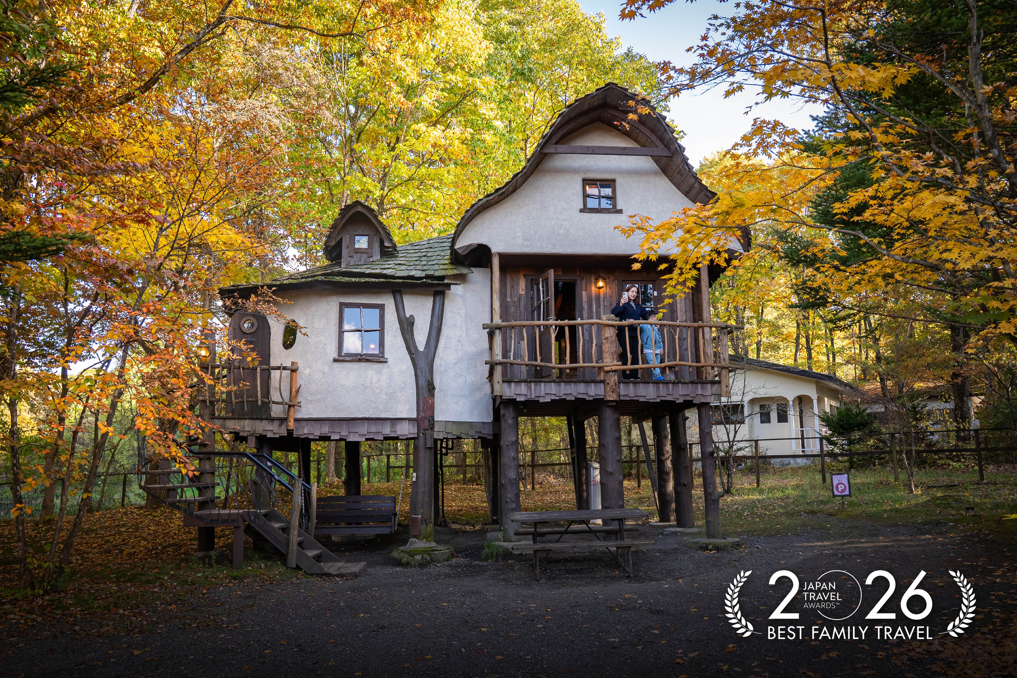 今年で開業31年を迎える、群馬県長野原町、浅間山の麓、標高1,100mの高原に位置するキャンプ場。コテージ50棟、テントサイト100区画を擁し、来場者は年間8万人。子どもたちが自然の中で遊び、学べる「生きた教室」のような場所づくりで、ユニークなツリーハウスや本格的な石窯コテージ、森に潜むキャラクターを探す冒険など、親子三世代が一緒に楽しめる工夫が満載です。