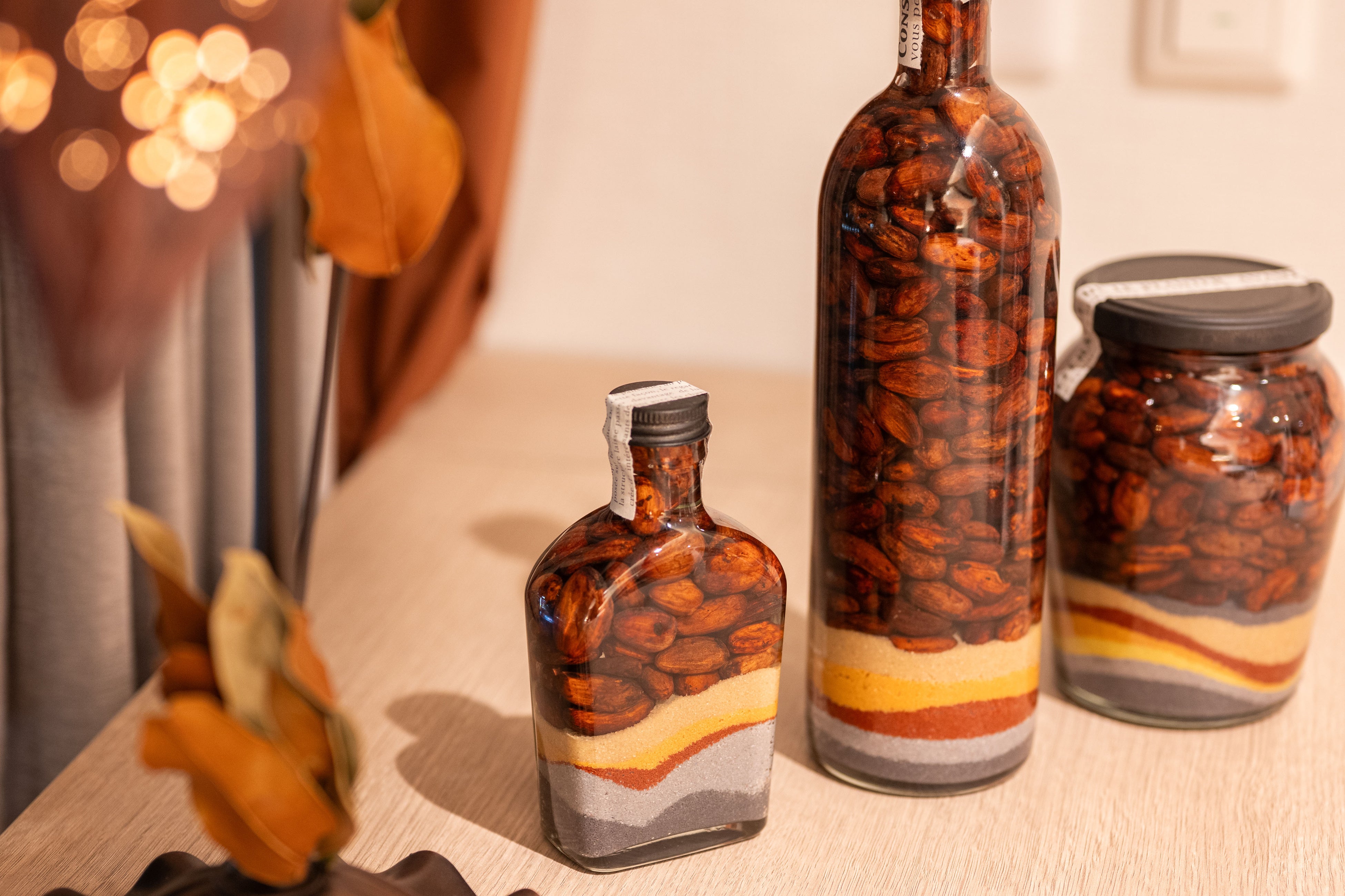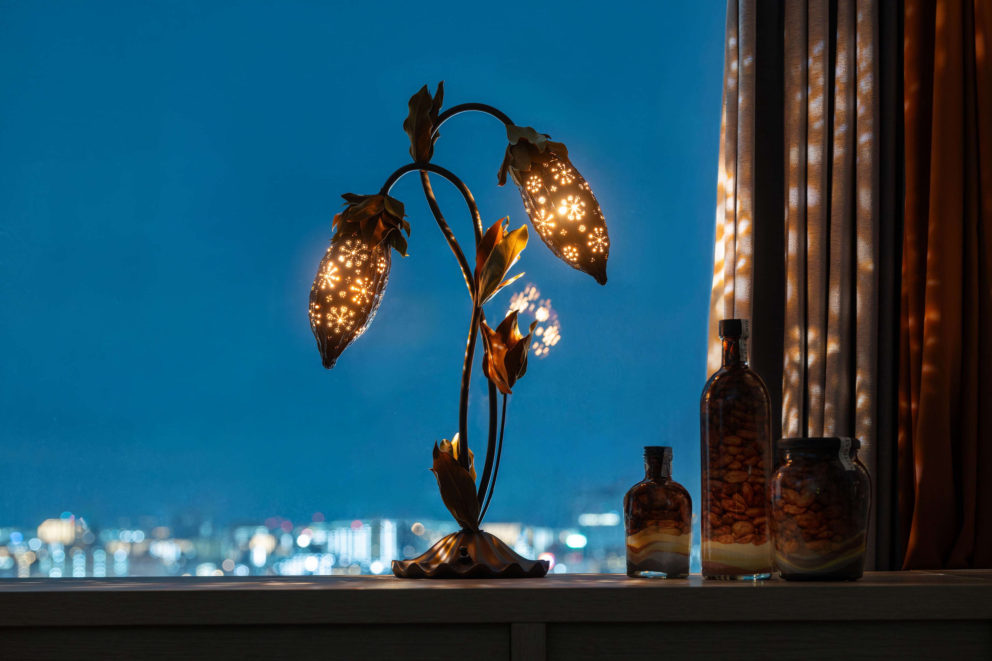 チョコレートは、カカオポッドと呼ばれる果実の中で育つカカオ豆が主な原材料のひとつです。カカオ豆の製造過程では通常、豆 が取り出された後のカカオポッドは廃棄されますが、株式会社ロッテのカカオビジネス開発部は、カカオポッドの新しい可能性に着目。カカオポッドを「ドライカカオポッド」に加工し、新たな価値の創出を目指す「カカオポッド コネクトプログラム」を始動させました。今回のCacao Roomでは、『植物と暮らす』をコンセプトに掲げる園芸店・株式会社ガレージが客室装飾プロデュースを担当。ドライカカオポッドを魅力的なインテリアに生まれ変わらせました。ベッドボード上のドライカカオポッド装飾が、デラックスルームにアートの装いを纏わせたほか、「カカオポッドランプ」が光と影のハーモニーで客室をやさしく照らします。