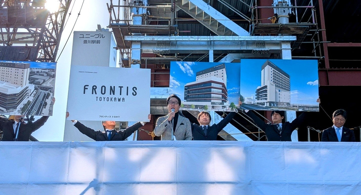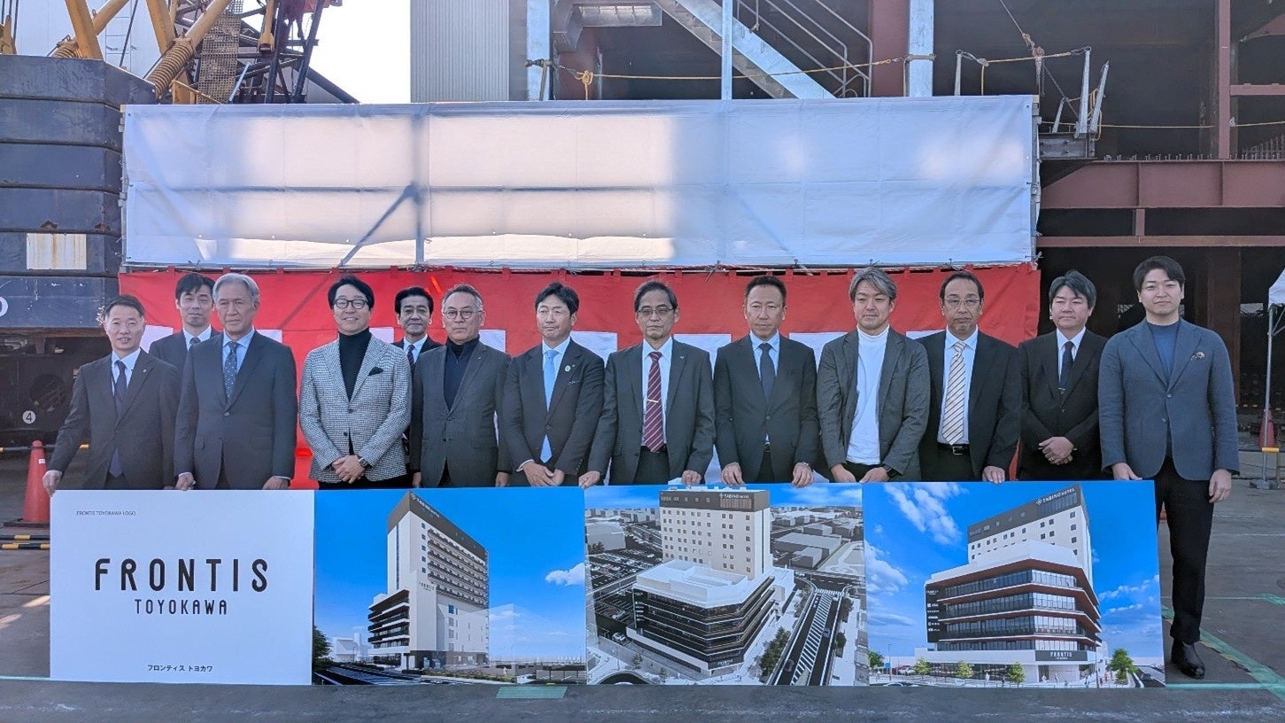 名鉄都市開発株式会社(本社:名古屋市中村区、代表取締役社長:日比野博)と株式会社ハクヨプロデュースシステム(本社:豊川市、代表取締役社長:笠原盛泰)は、2025年5月に着工した豊川駅東口に建設中の複合ビルについて、建物名称及びロゴマークを決定いたしました。また、2026年1月に鉄骨の棟上げが完了し、1月17日に上棟セレモニーを行いましたのでお知らせいたします。