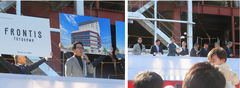 FRONTIS TOYOKAWAは2026年1月に鉄骨棟上げを無事完了いたします。これを記念し、1月17日(土)に建設現場にて上棟セレモニーを開催いたしました。