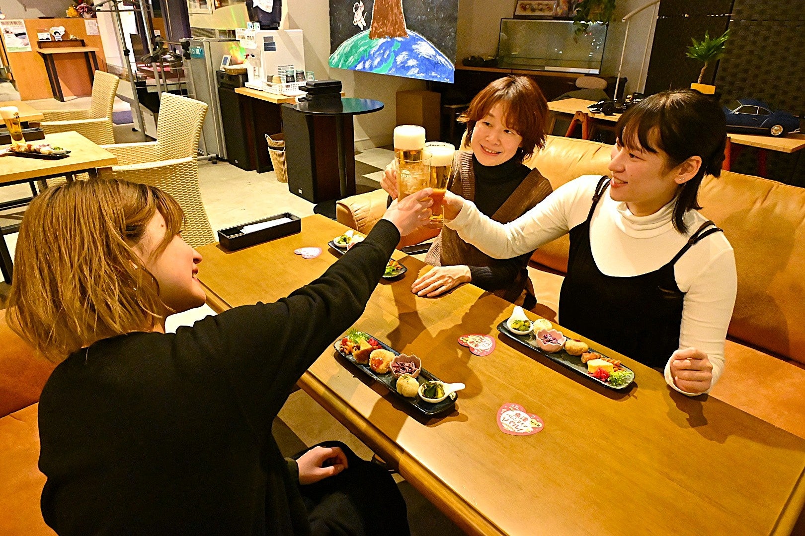 実は、飲食店の女性創業者が多いと言われている魚津市。「バレンタインデー」にちなみ開催する「魚津バレンタインバル」は、冬の消費喚起と同時に女性活躍の応援も目的の一つです。チケットとマップを片手に魚津の飲食店で気軽にはしご酒を楽しみながら、地域やそこで暮らす人々と交流できる貴重な機会を参加者へ提供します。