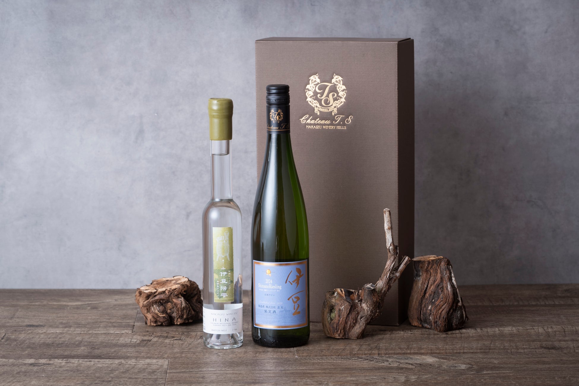 伊豆陽雫HINAの誕生を祝して、ファーストバッチより特別に限定36セットを中伊豆ワイナリーオンラインショップにて発売いたします。本セットは、ぶどうをこよなく愛するすべての方へお届けする バレンタインデー特別の〈ぶどう尽くし〉セットです。大切な方への贈り物として、またご自身へのご褒美として、 “想いを伝える一杯”となることを願い、 信濃リースリングから生まれたワインとブランデーを セットでご用意いたしました。また今回は、信濃リースリングの木片を一片、添えさせていただきます。ぶどうの木は古くより生命や豊穣の象徴とされる、縁起の良い存在です。ペーパーウェイトとして、あるいはお好みの香りを垂らして アロマディフューザーとして、日常のそばに信濃リースリングを感じていただけましたら幸いです。