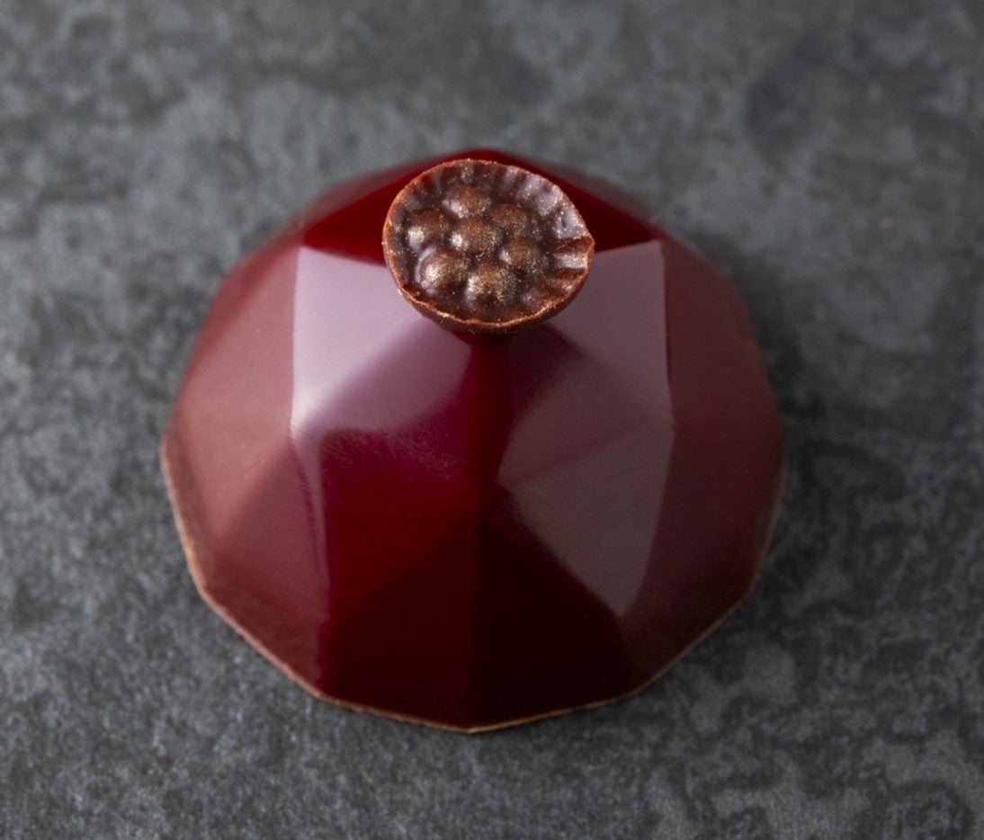 チョコレートで表現したひと粒。鮮やかなグリーンのガナッシュには最高級シシリー産のピスタチオを使用し、なめらかな口どけと