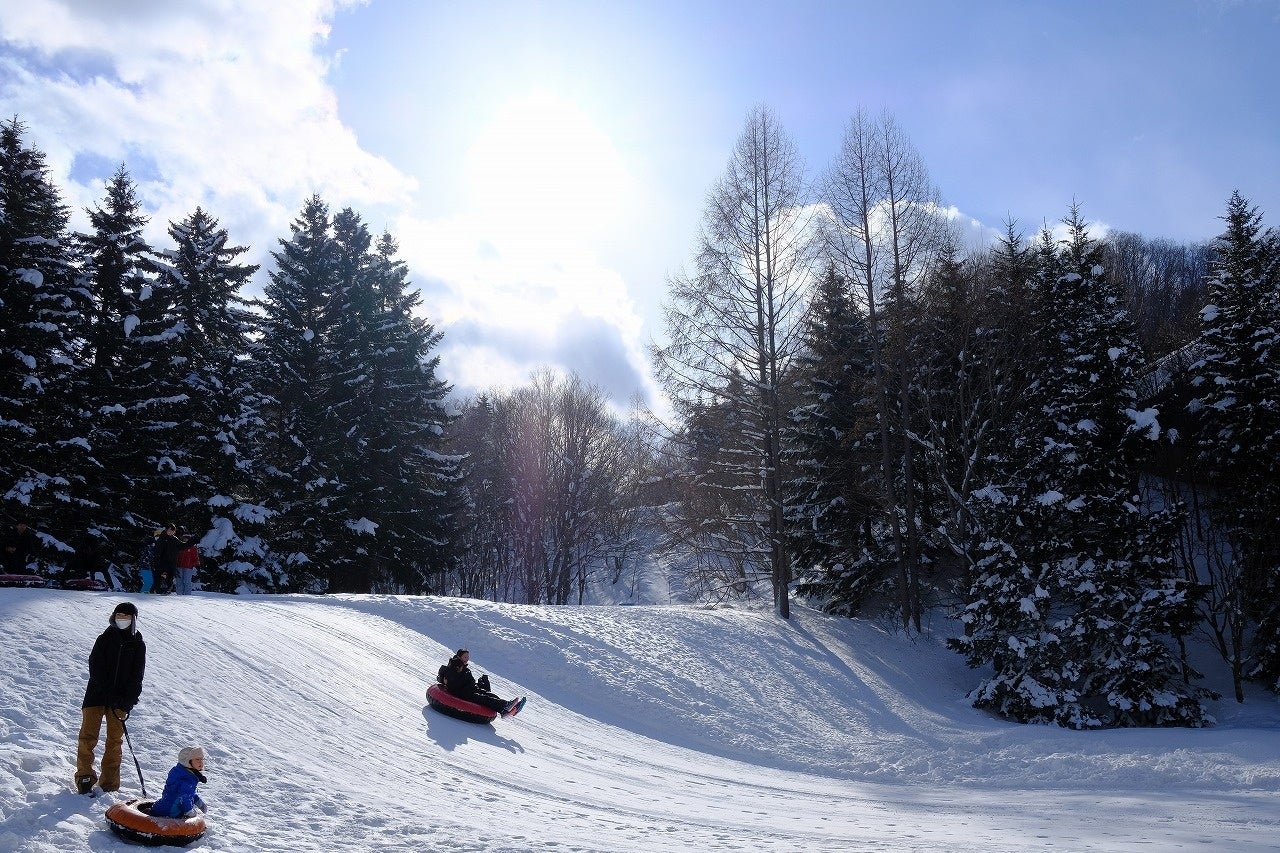 渓流ゾーンのロッジゆきざさ前にある、なだらかなチューブそりゲレンデです。