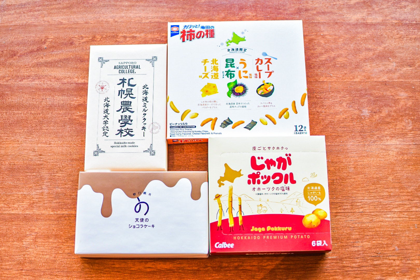 じゃがポックル、札幌農学校、北海道限定柿の種、「の」ブランド天使のショコラケーキ