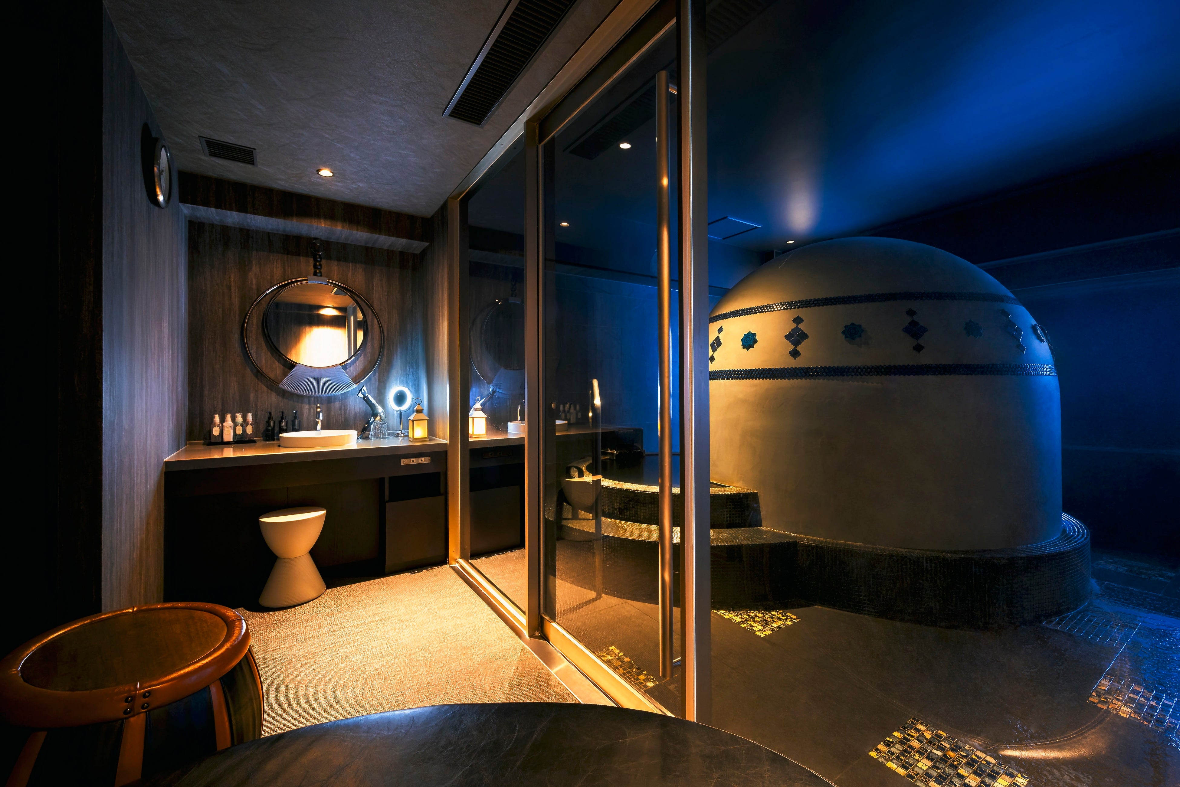 ドーム型の静寂に包まれ、自分自身と向き合うひとときを提供する貸切風呂「瞑想の湯」。
