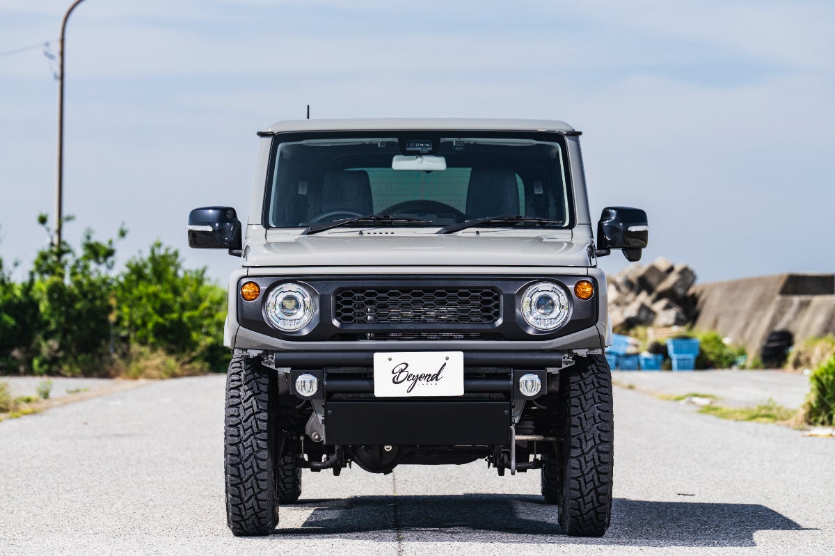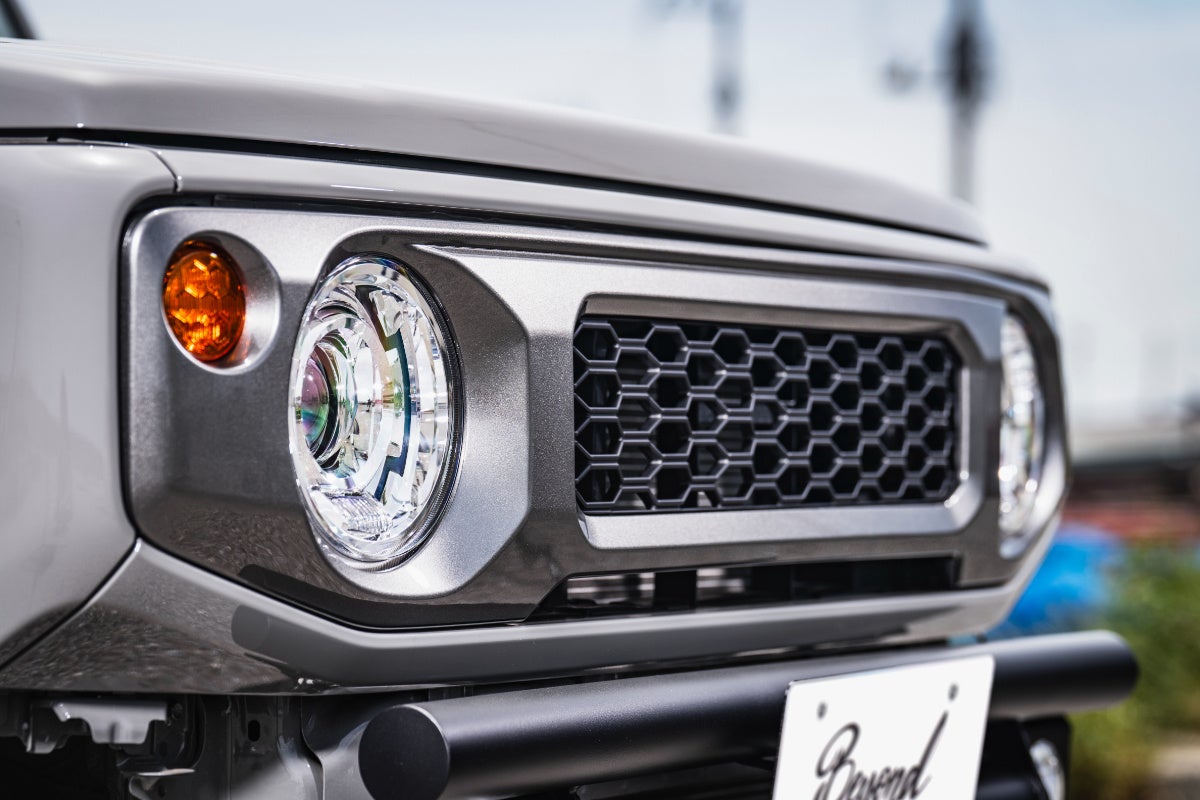 多くのジムニーユーザーに支持されている純正オプショングリルを想起させる、エッジの効いたハニカムメッシュデザインを採用。