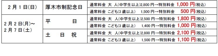 2月1日当日は入場料が1,000円ポッキリで超おトク!2026年2月1日(日)~2026年2月7日(土)