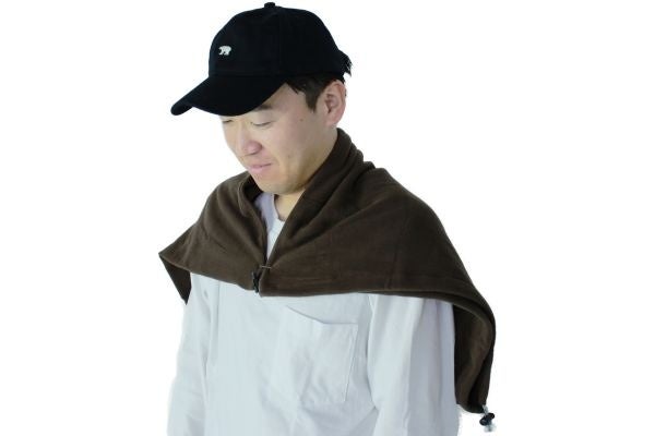 頭周りや、肩周りに付けることで、すき間からの冷気を防ぎます。