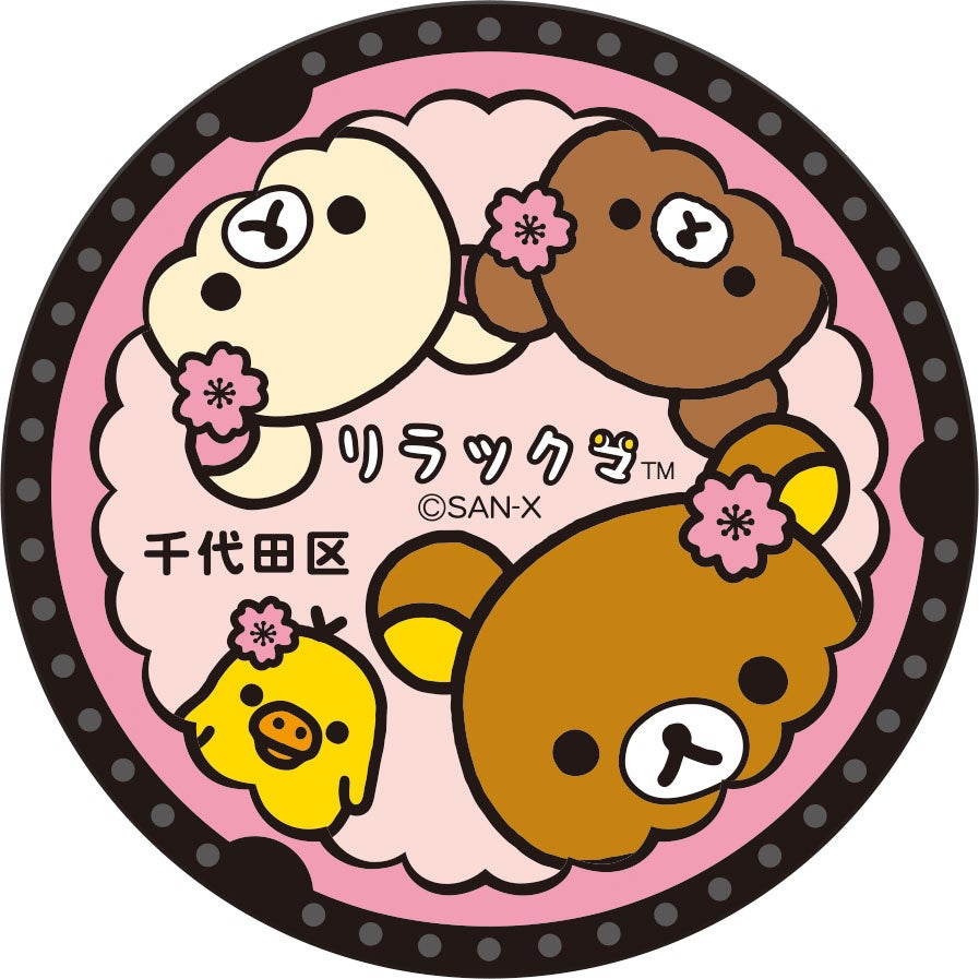 リラックマたちと区の花さくらを組み合わせたデザインマンホールそっくりのマグネットが新登場!